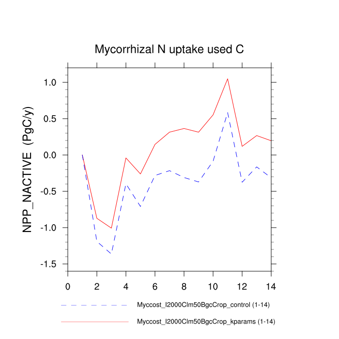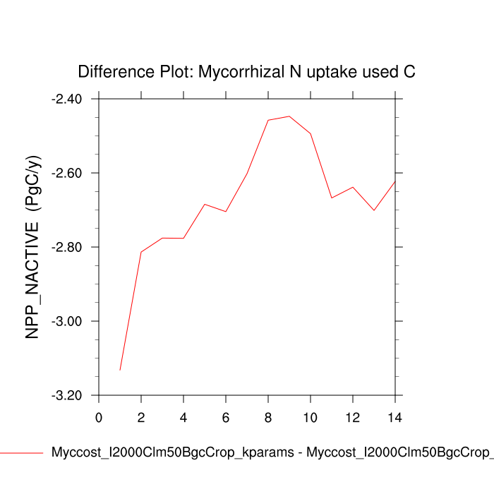 | Mycorrhizal N uptake used C (NPP_NACTIVE) | TrendPlot | DifferencePlot | AnomalyPlot | ||