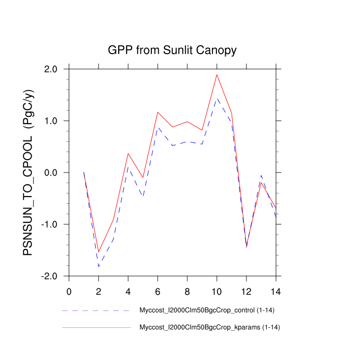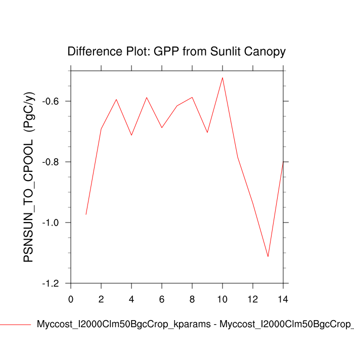 | GPP from Sunlit Canopy (PSNSUN_TO_CPOOL) | TrendPlot | DifferencePlot | AnomalyPlot | ||