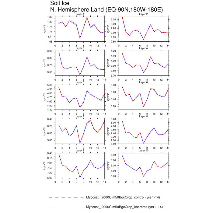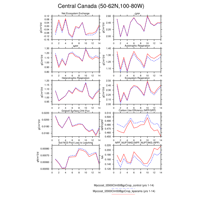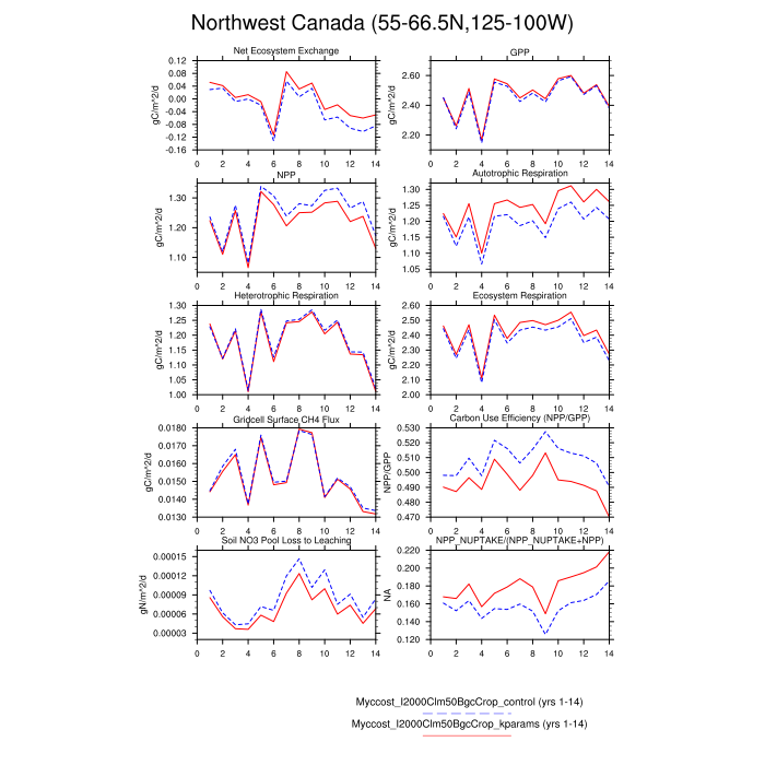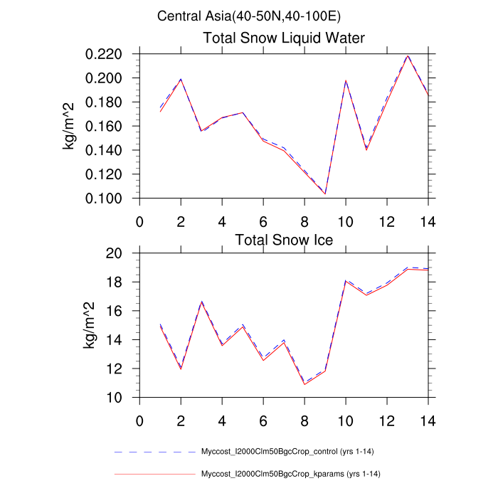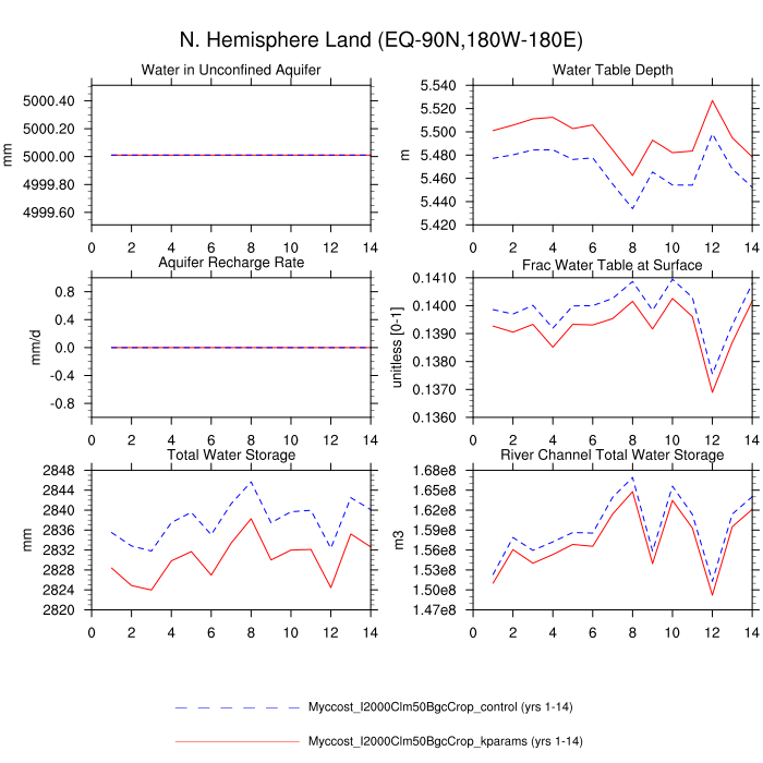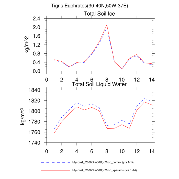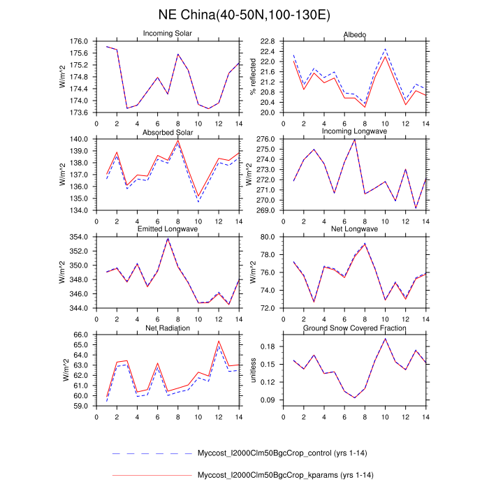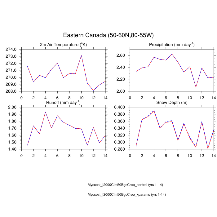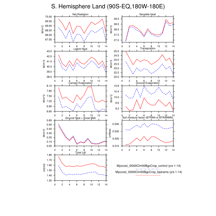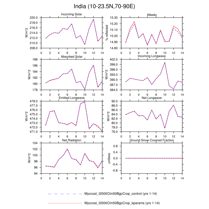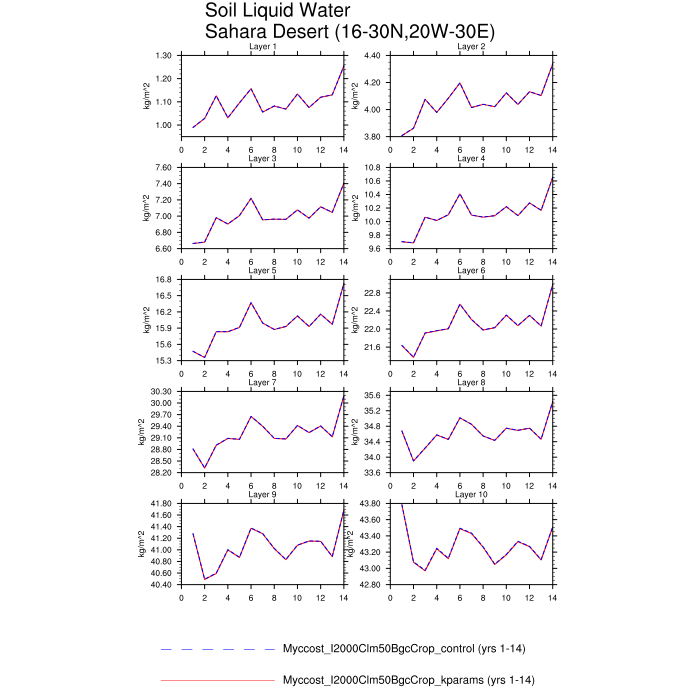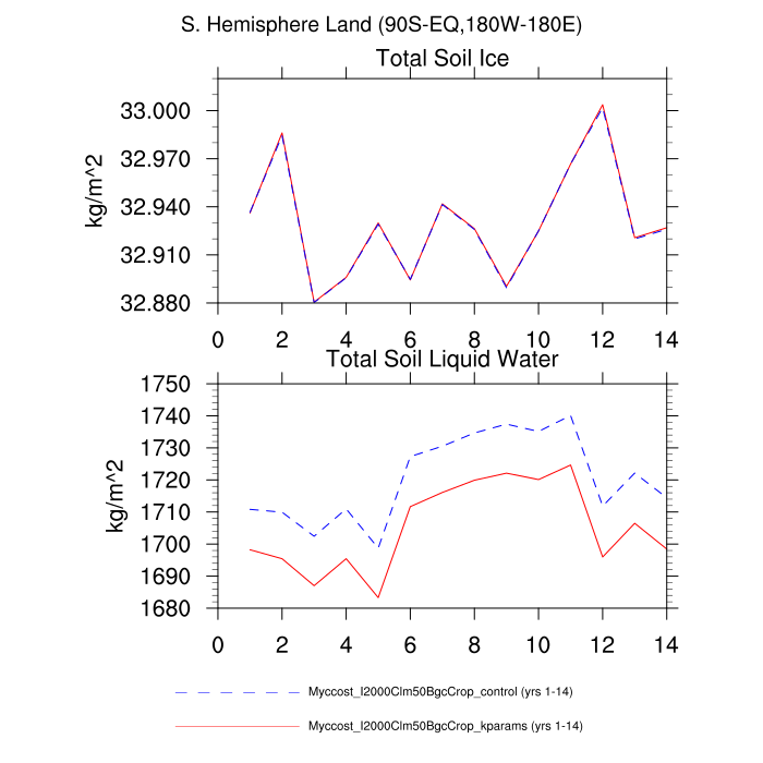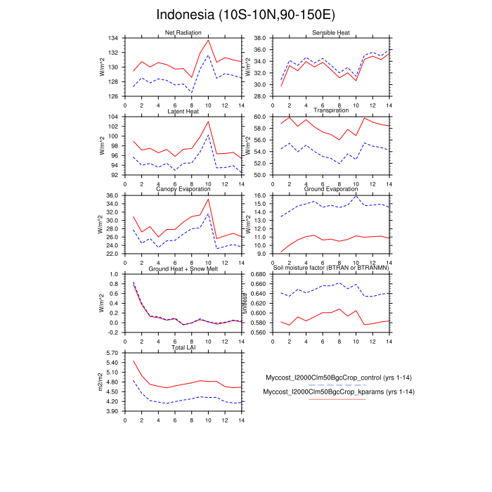 Set 6 Description: Line plots of annual trends in regional soil water/ice and temperature, runoff, snow water/ice, photosynthesis