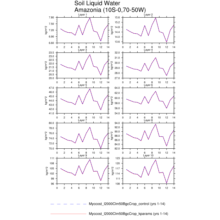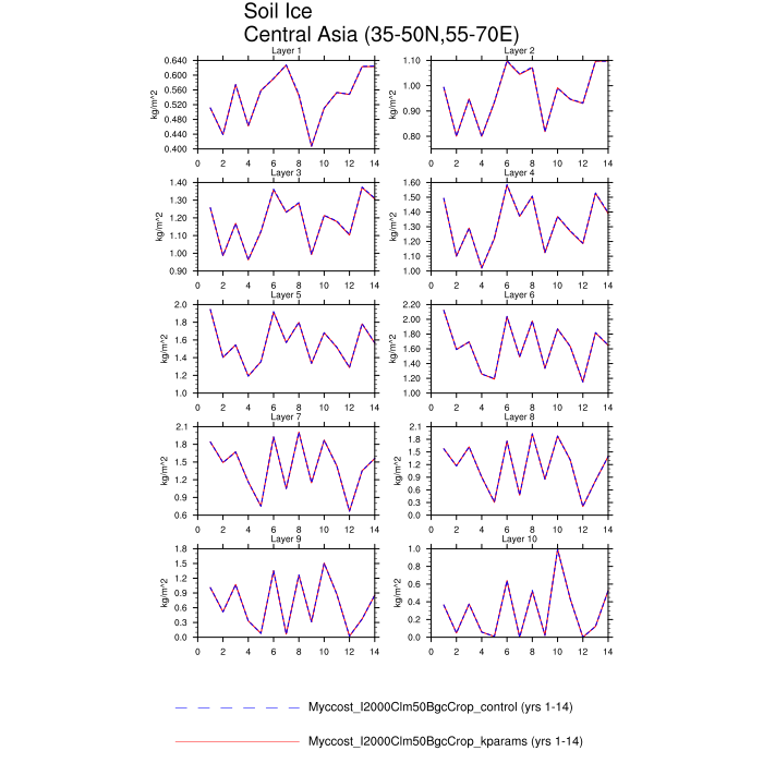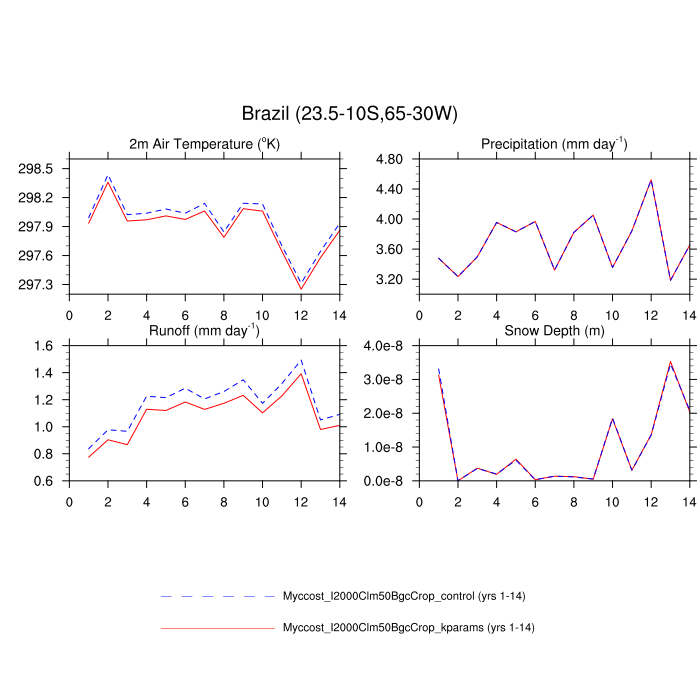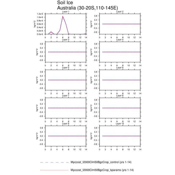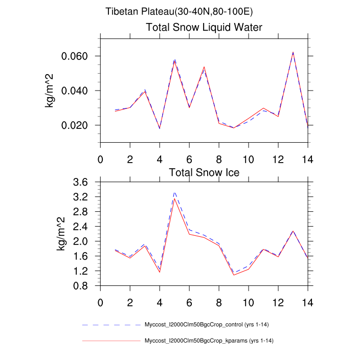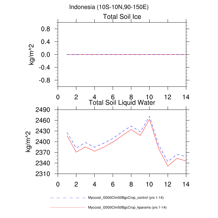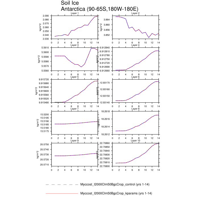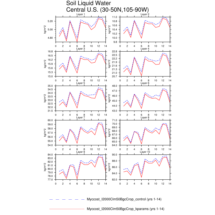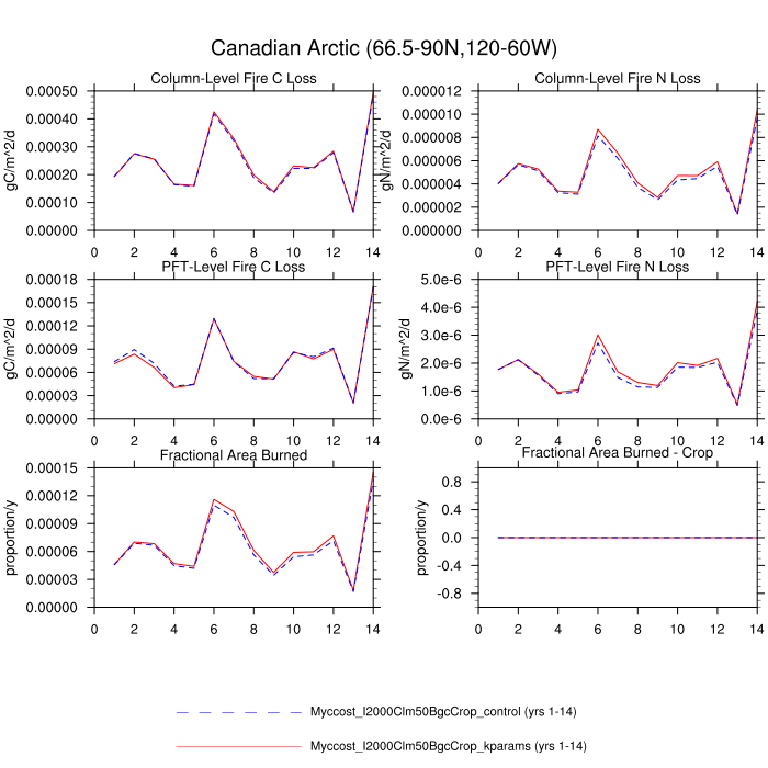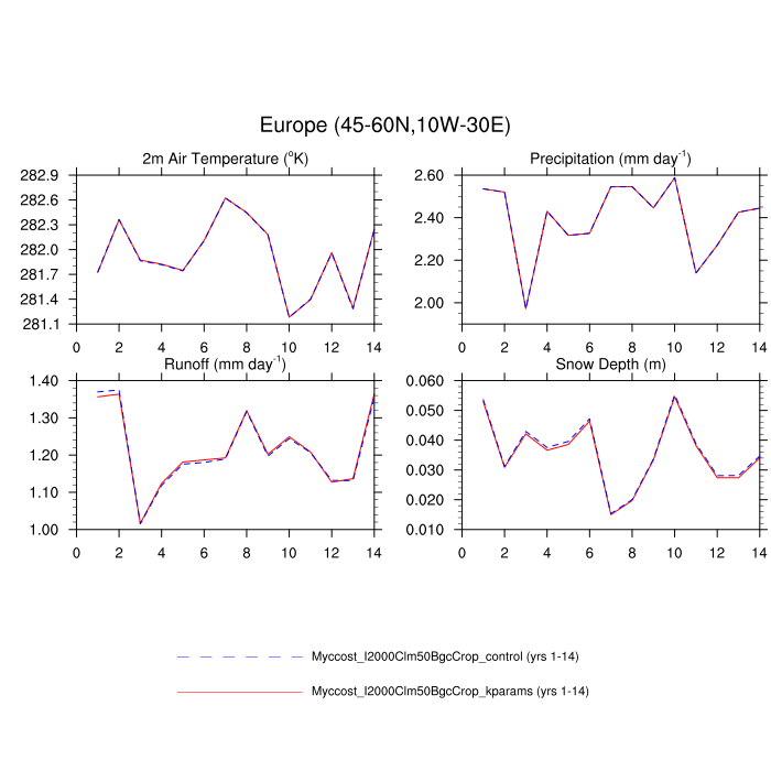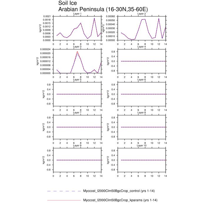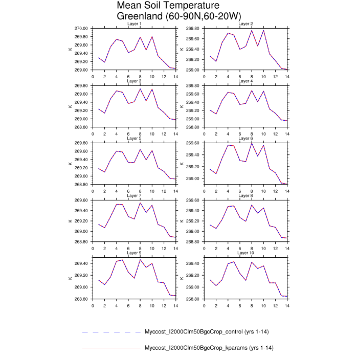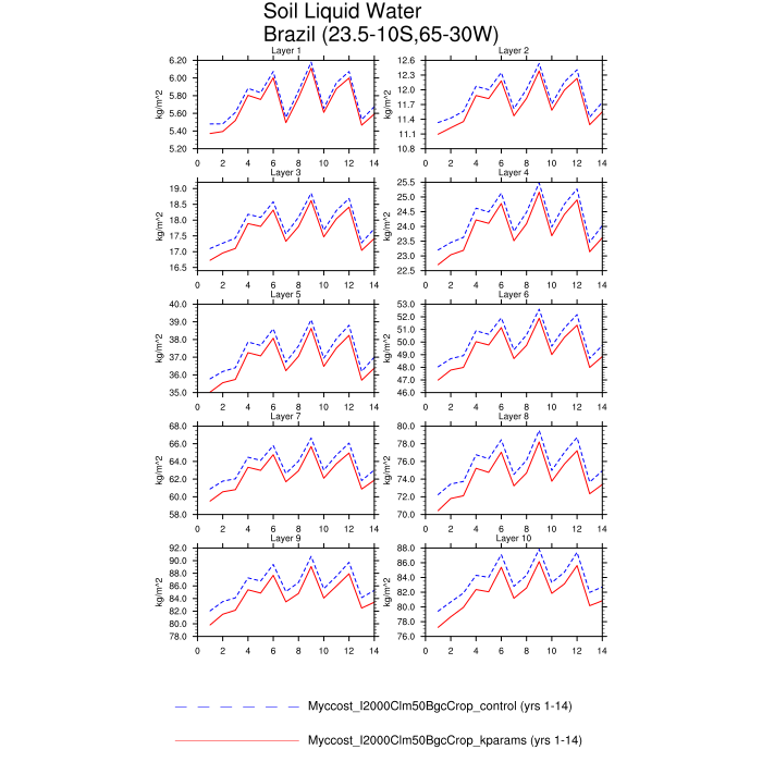 Set 6 Description: Line plots of annual trends in regional soil water/ice and temperature, runoff, snow water/ice, photosynthesis