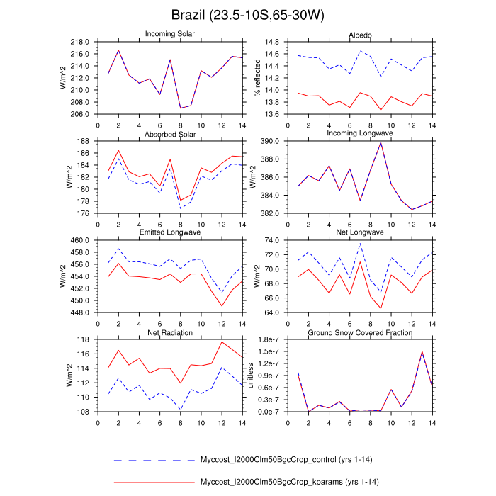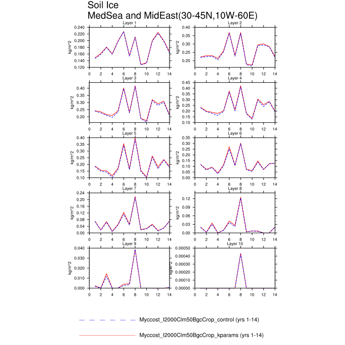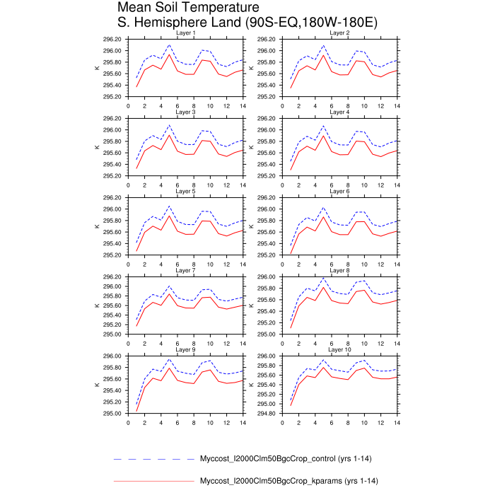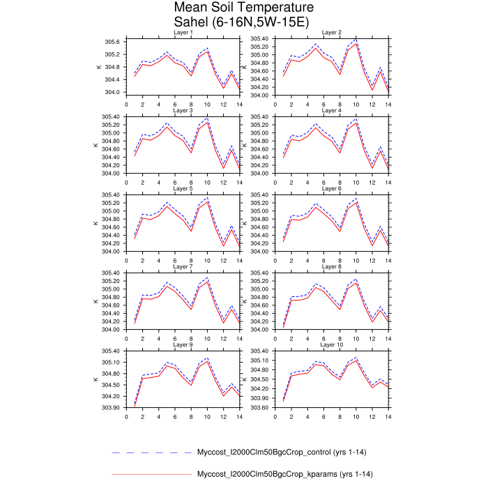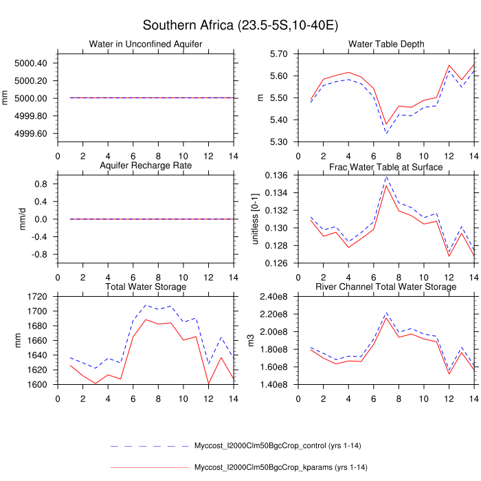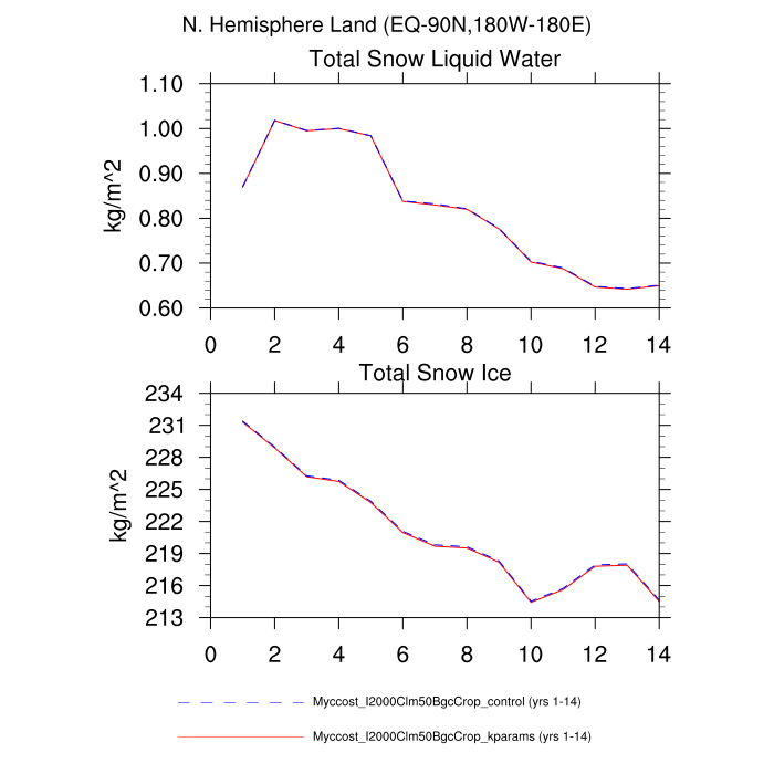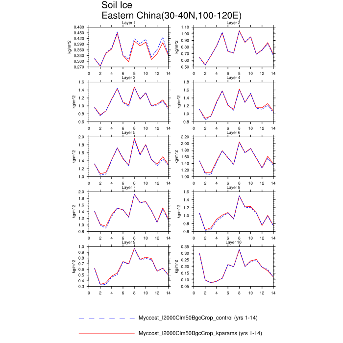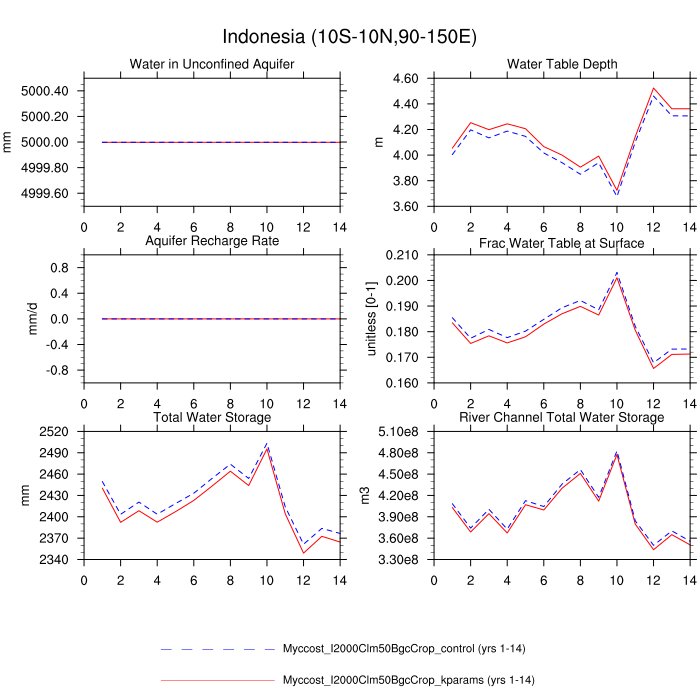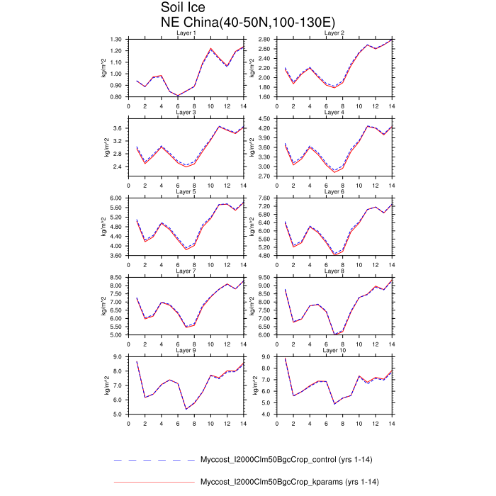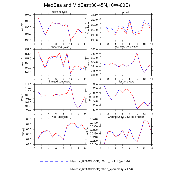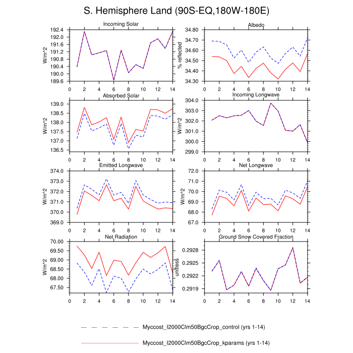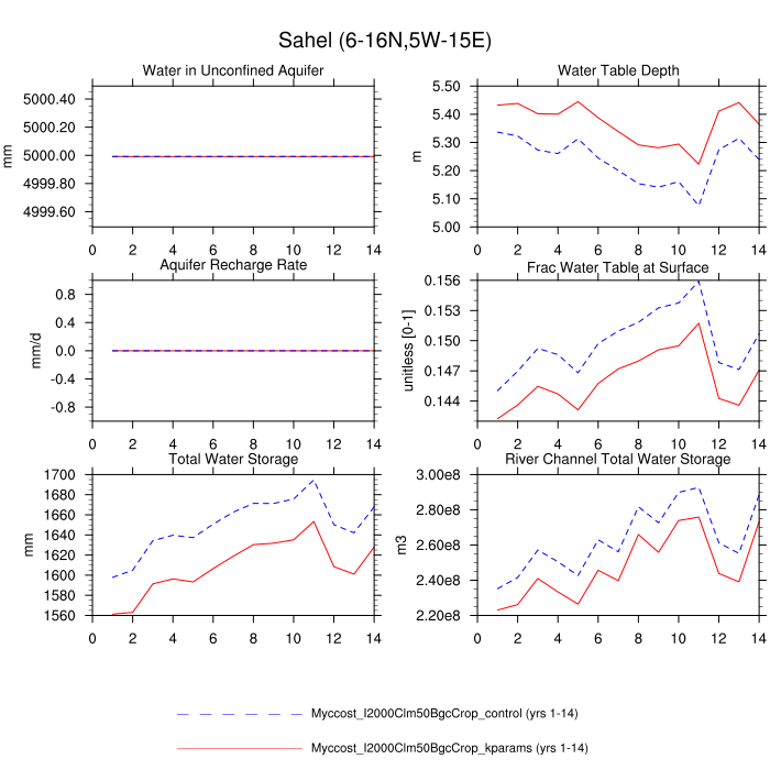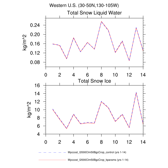 Set 6 Description: Line plots of annual trends in regional soil water/ice and temperature, runoff, snow water/ice, photosynthesis