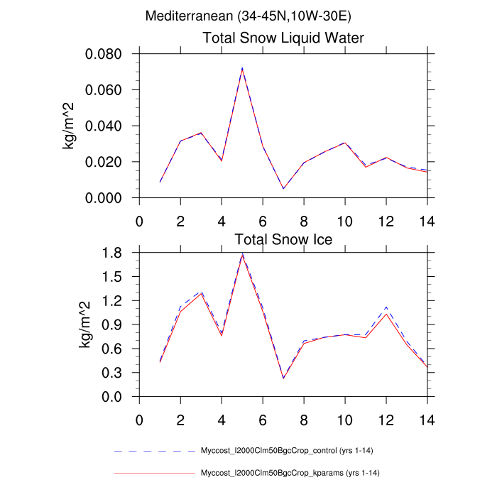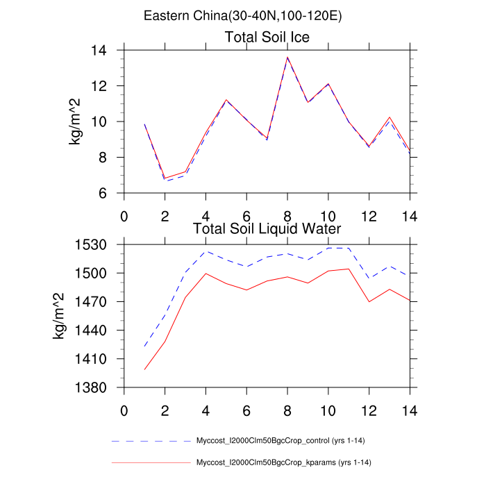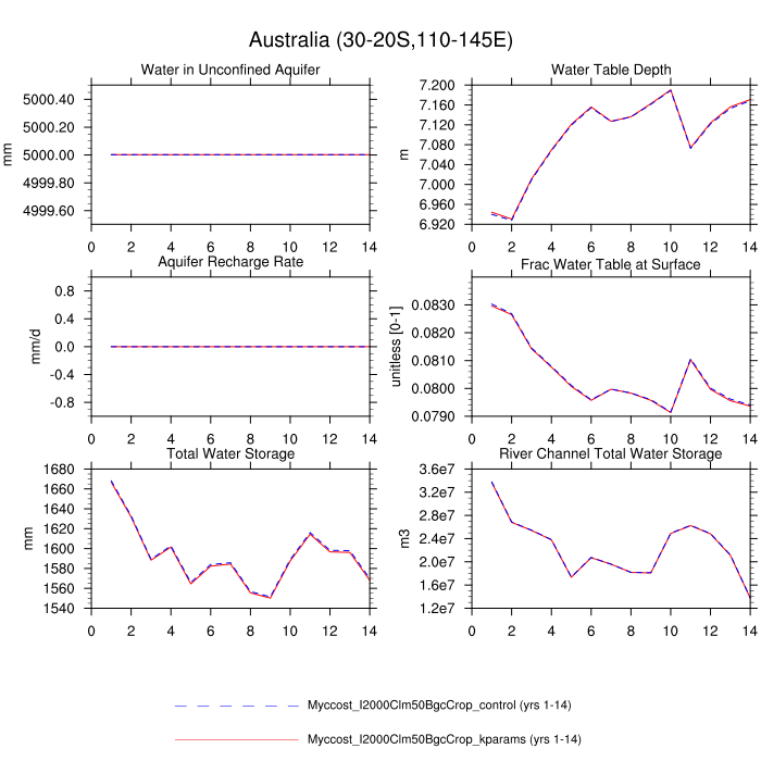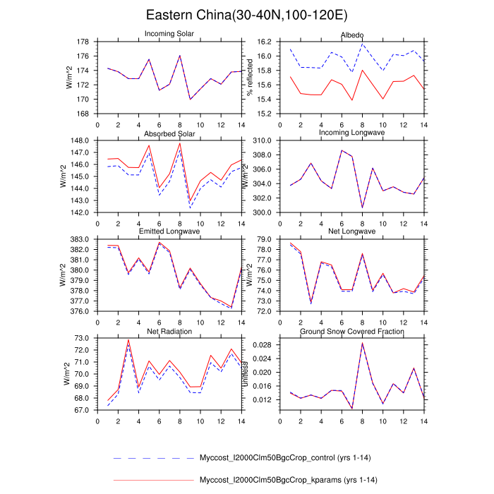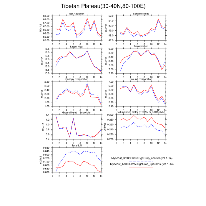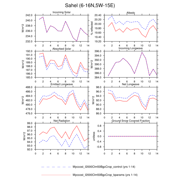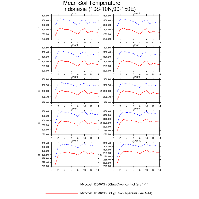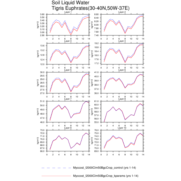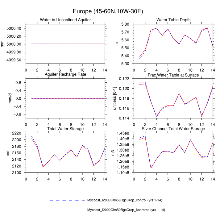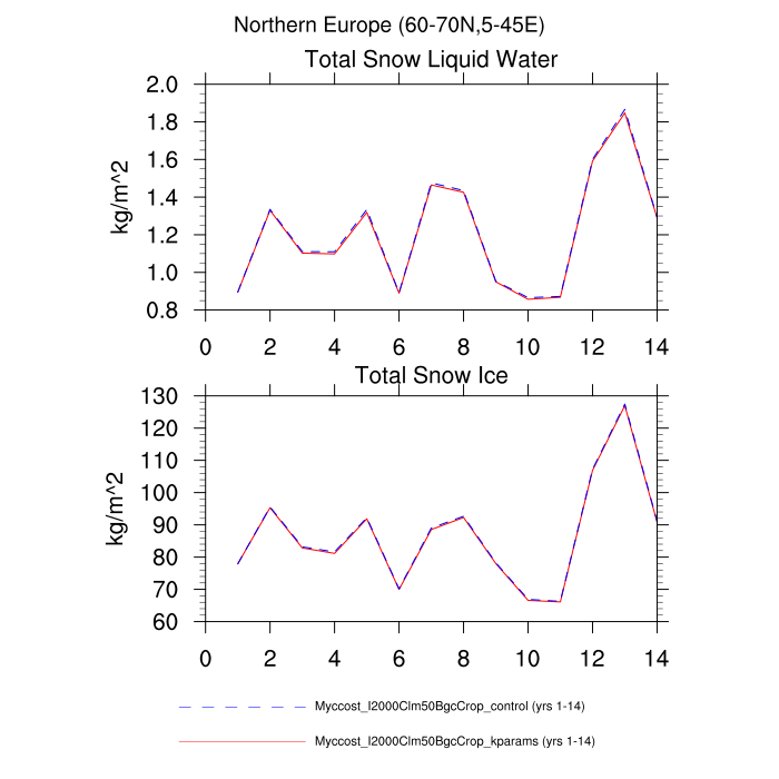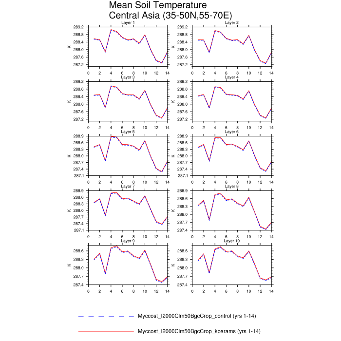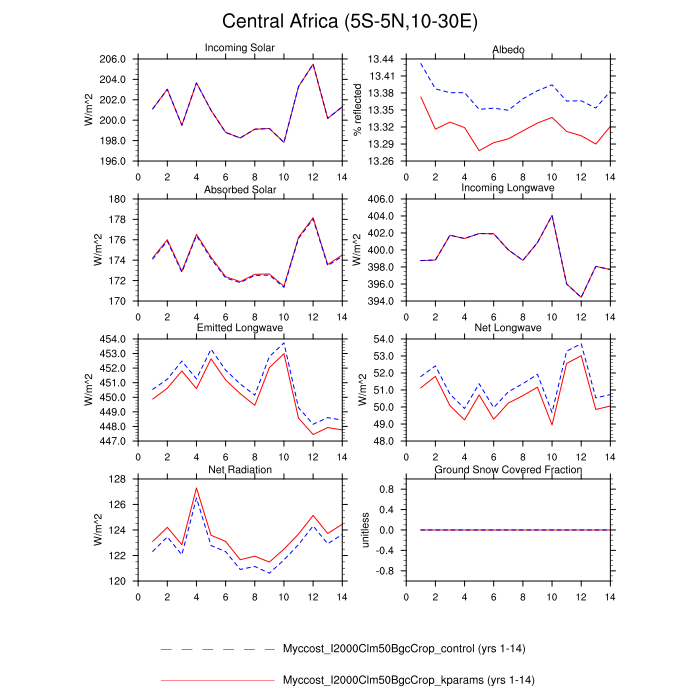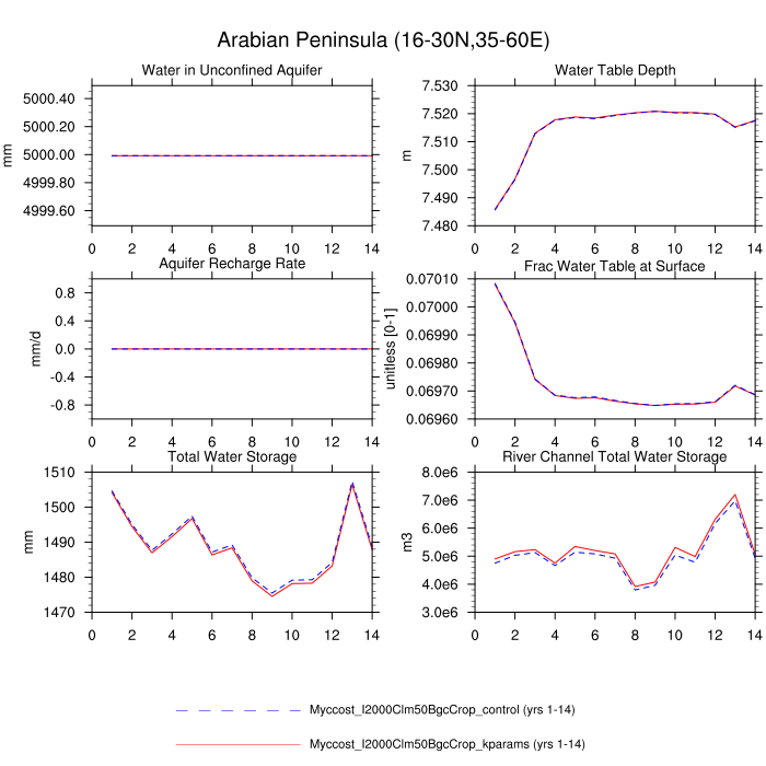 Set 6 Description: Line plots of annual trends in regional soil water/ice and temperature, runoff, snow water/ice, photosynthesis