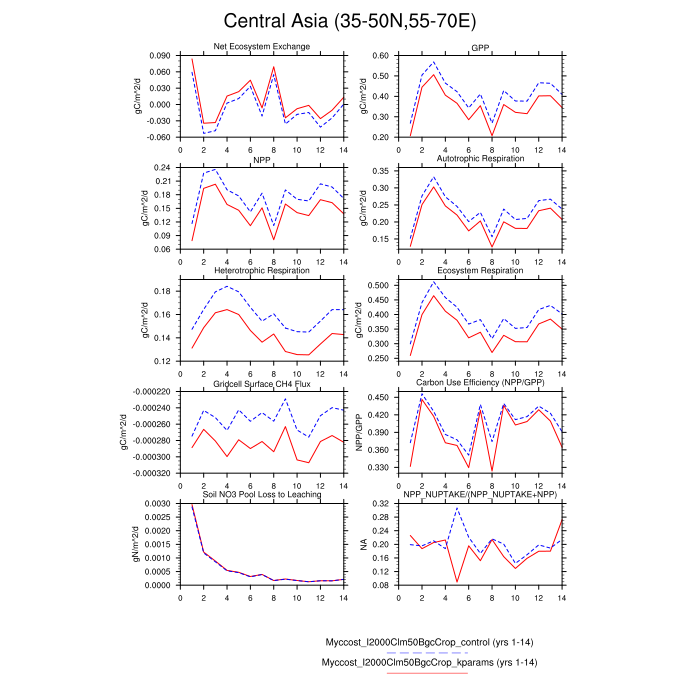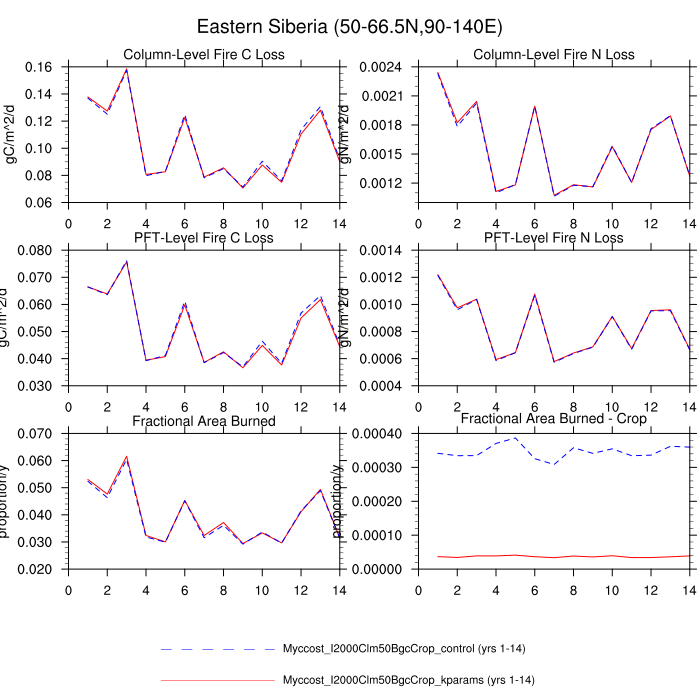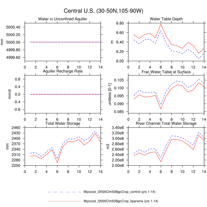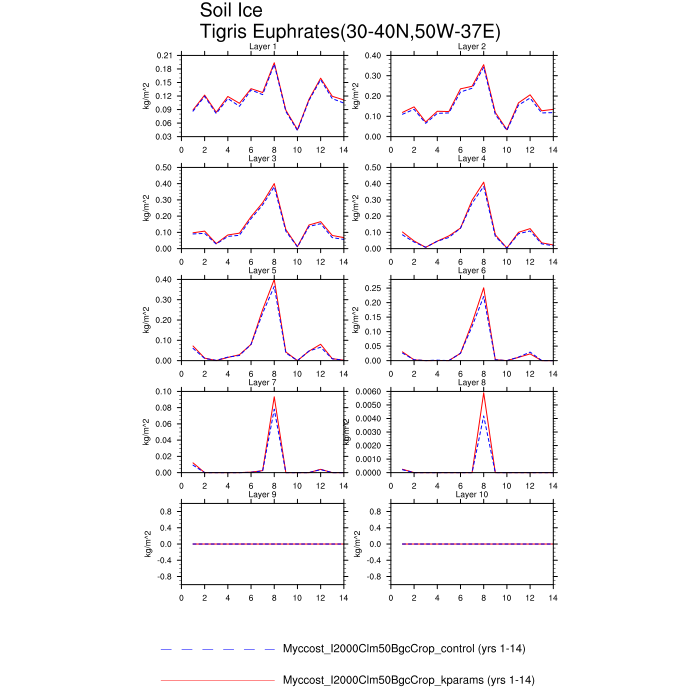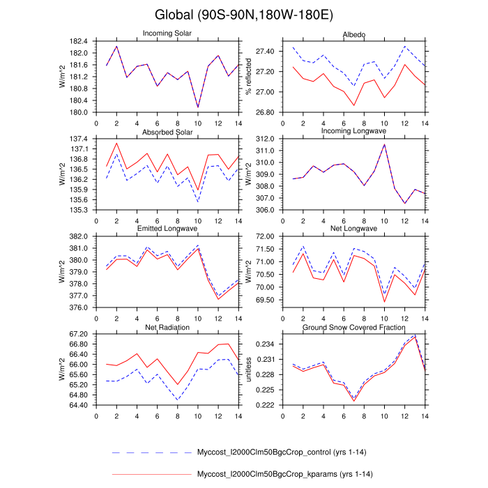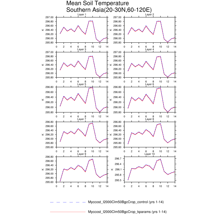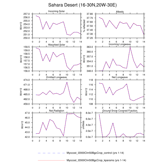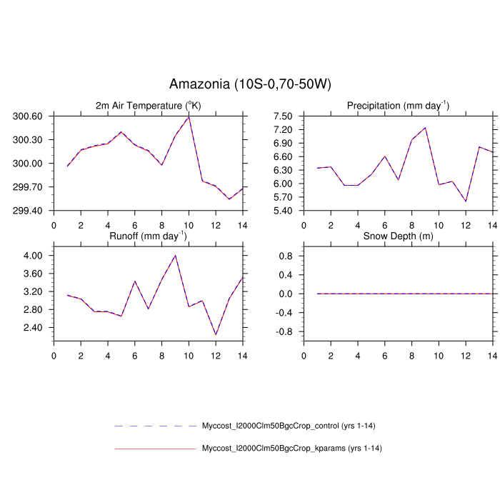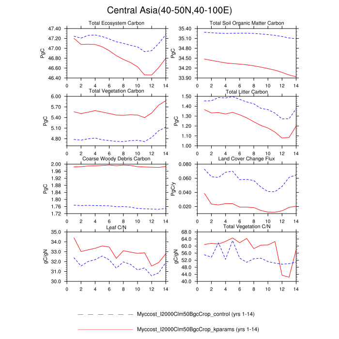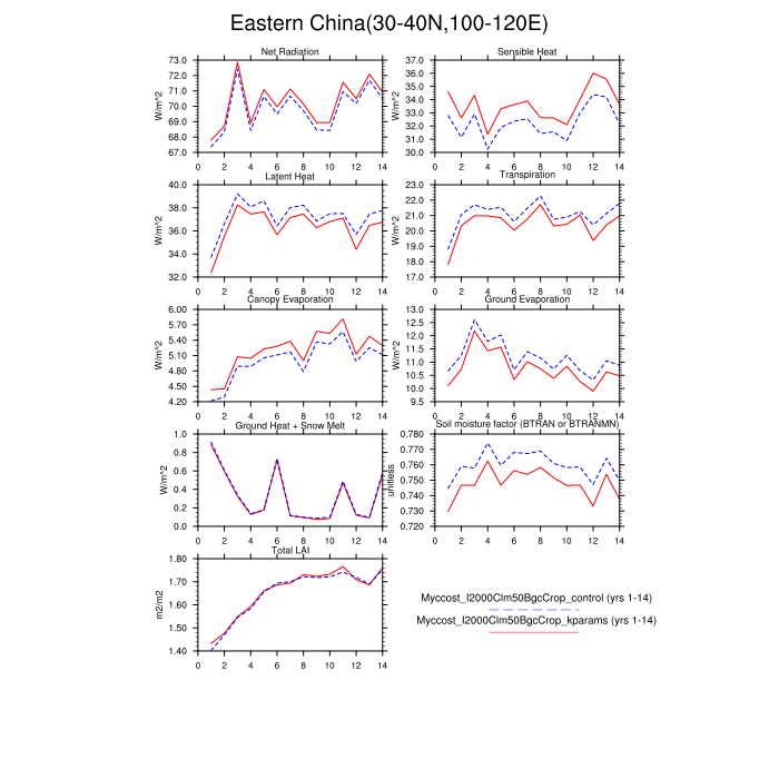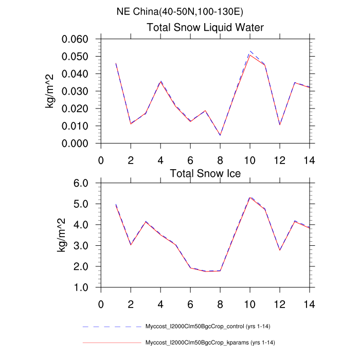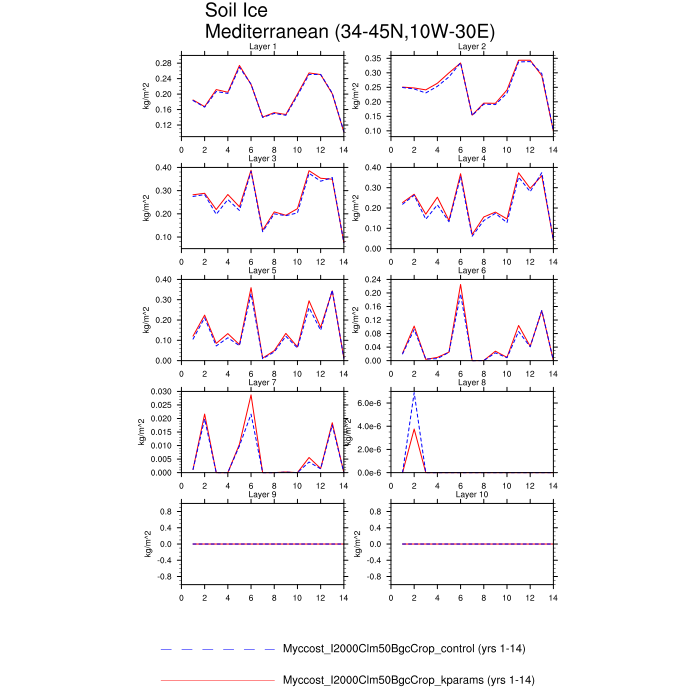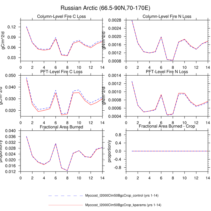 Set 6 Description: Line plots of annual trends in regional soil water/ice and temperature, runoff, snow water/ice, photosynthesis