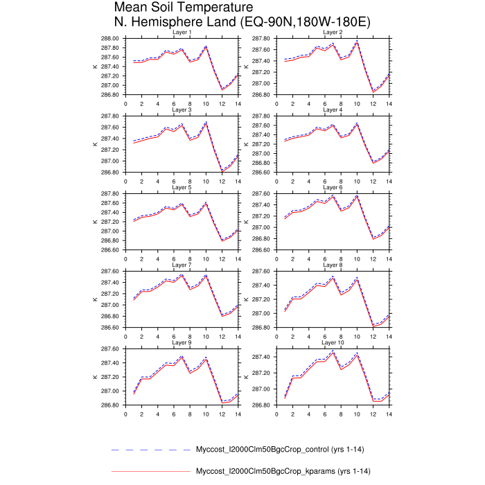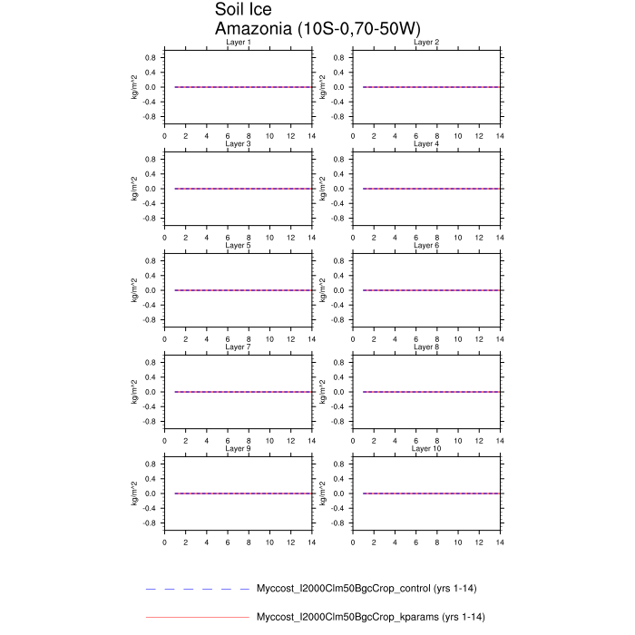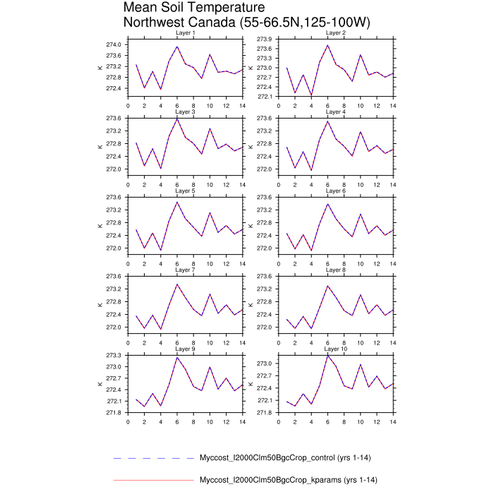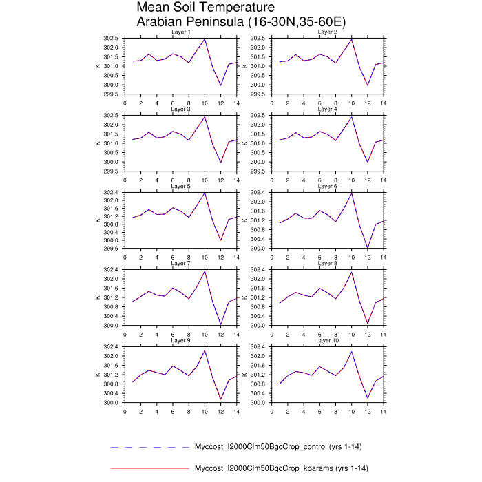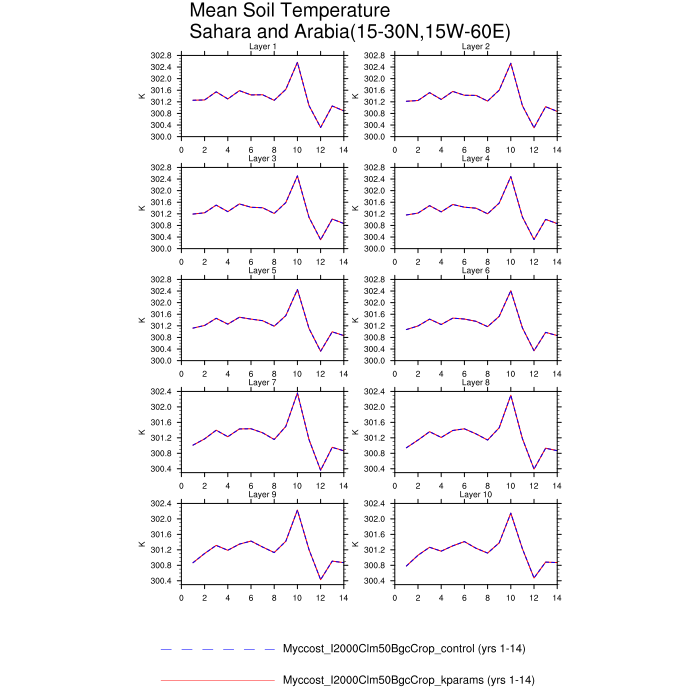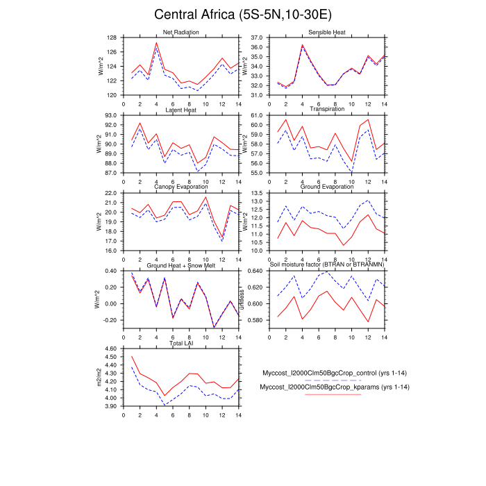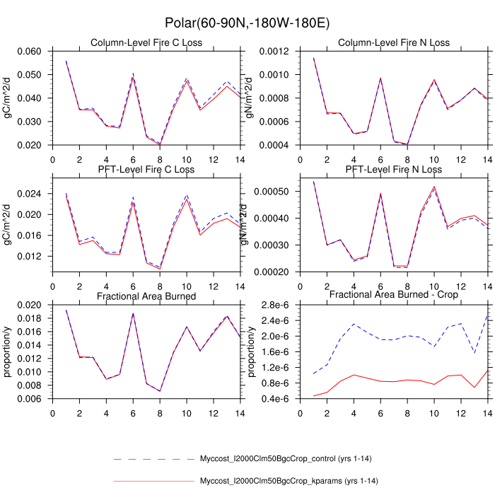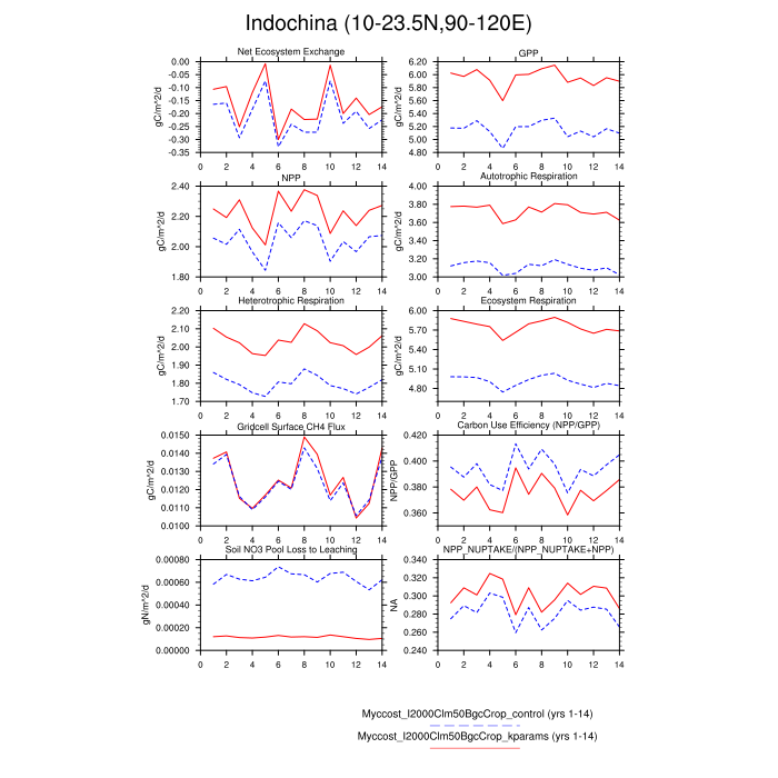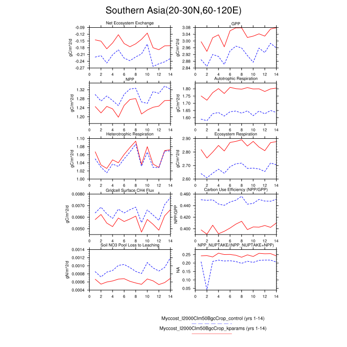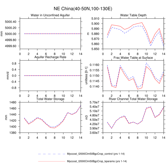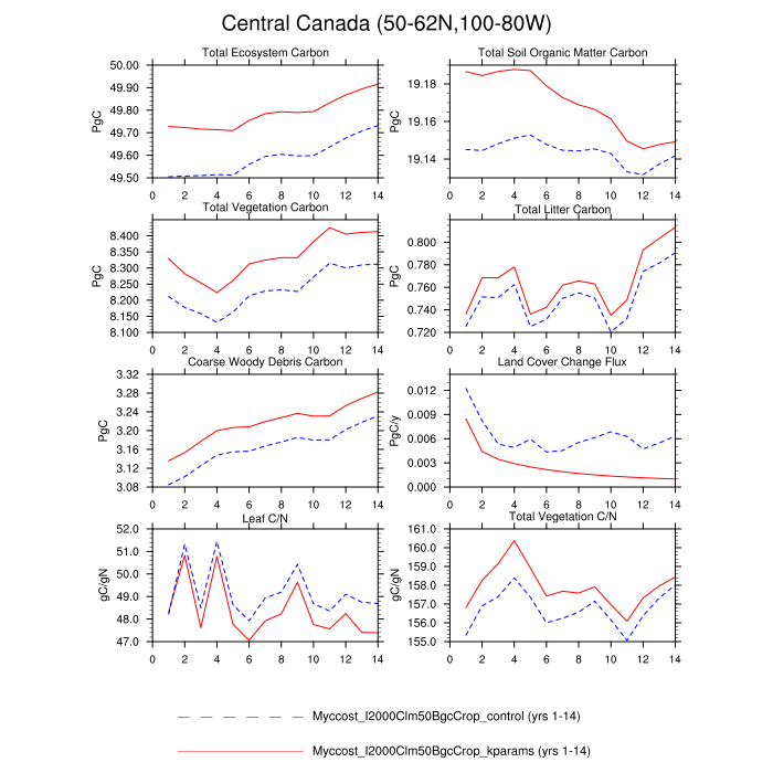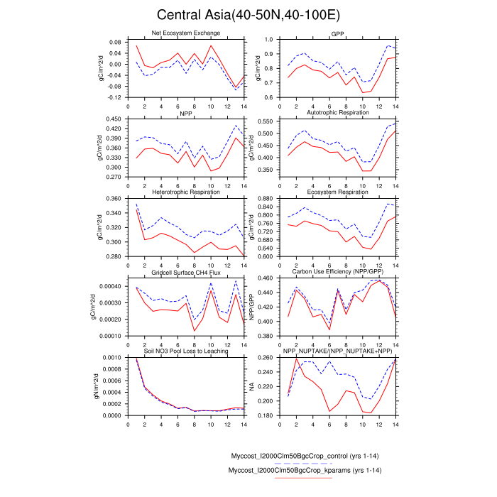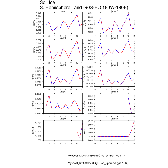 Set 6 Description: Line plots of annual trends in regional soil water/ice and temperature, runoff, snow water/ice, photosynthesis