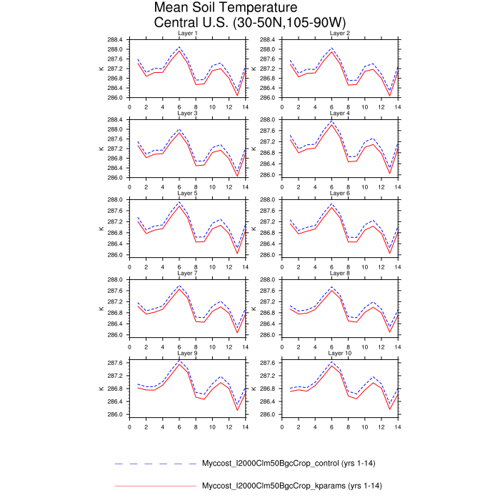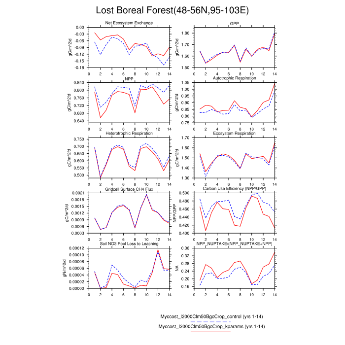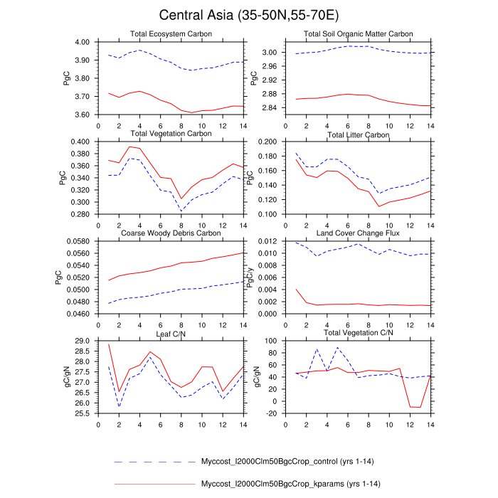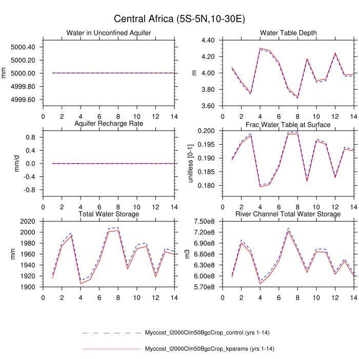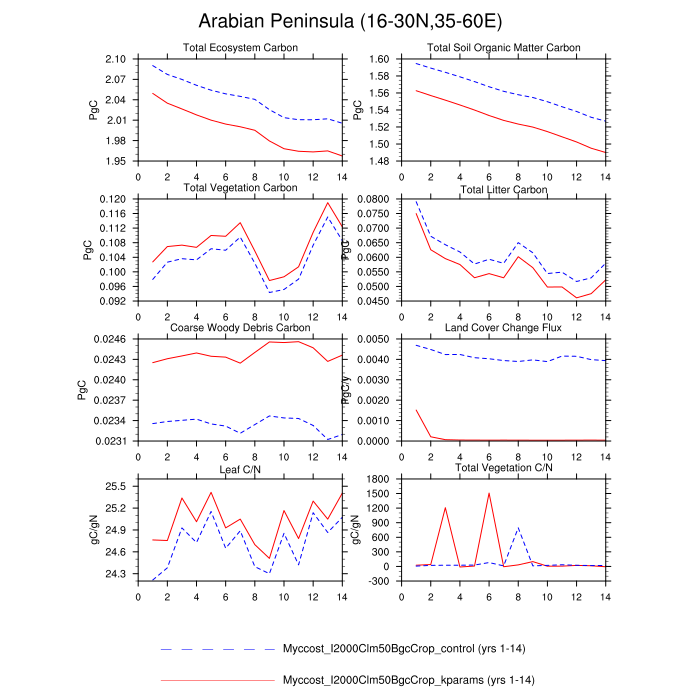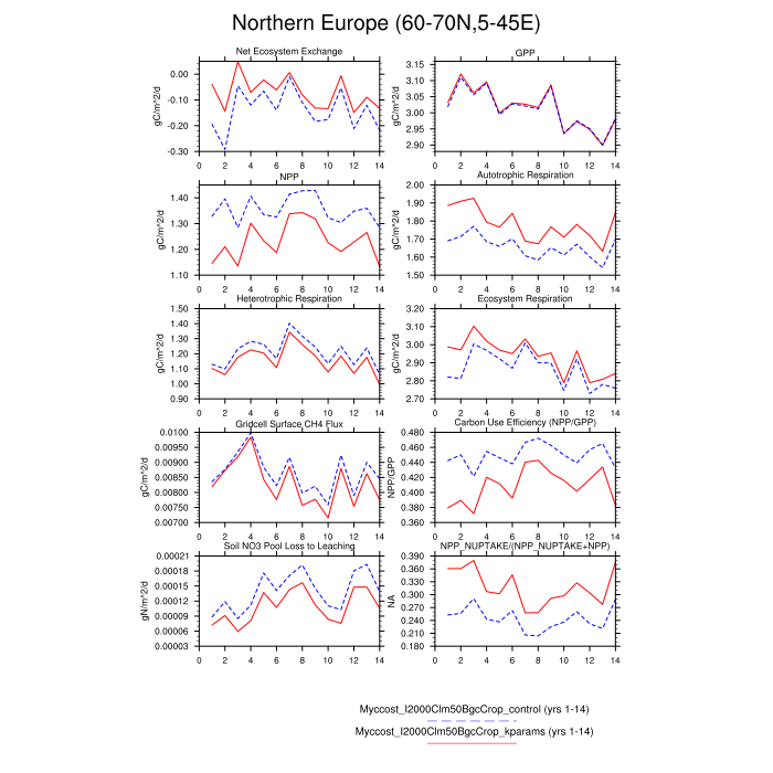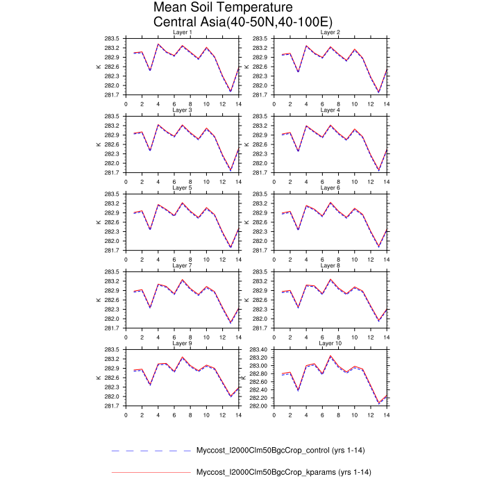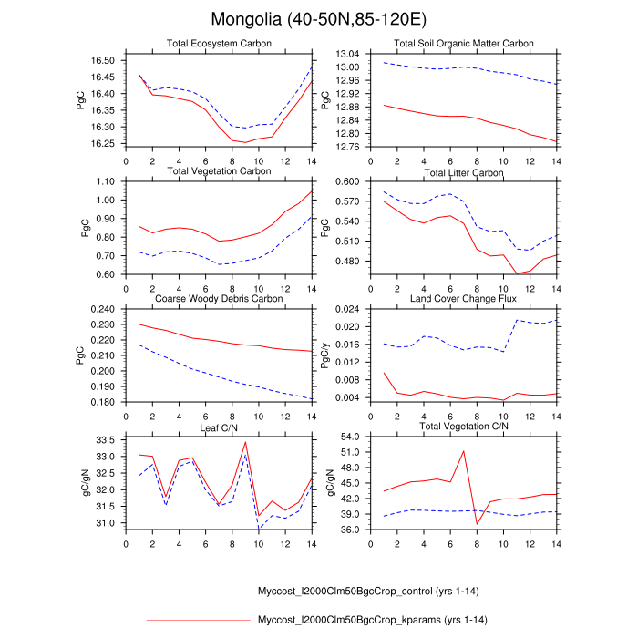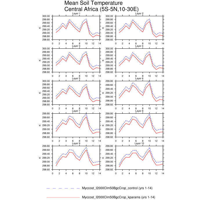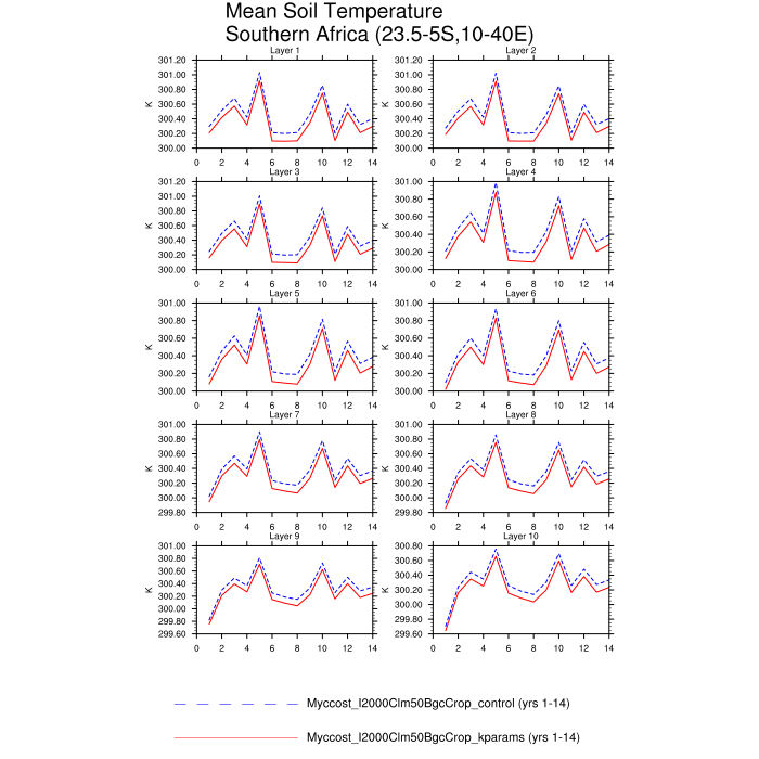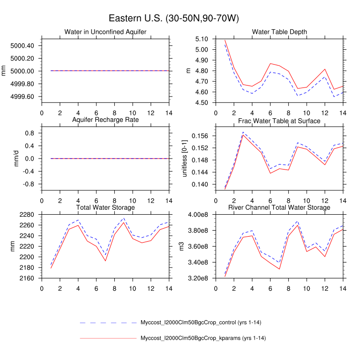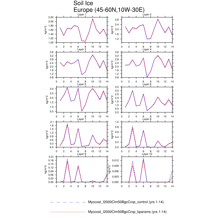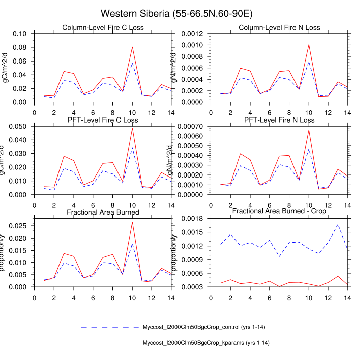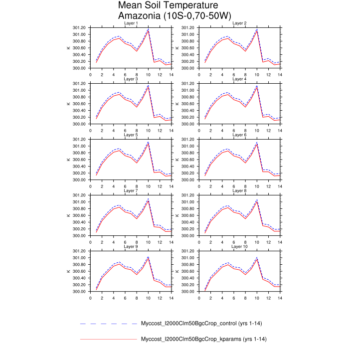 Set 6 Description: Line plots of annual trends in regional soil water/ice and temperature, runoff, snow water/ice, photosynthesis