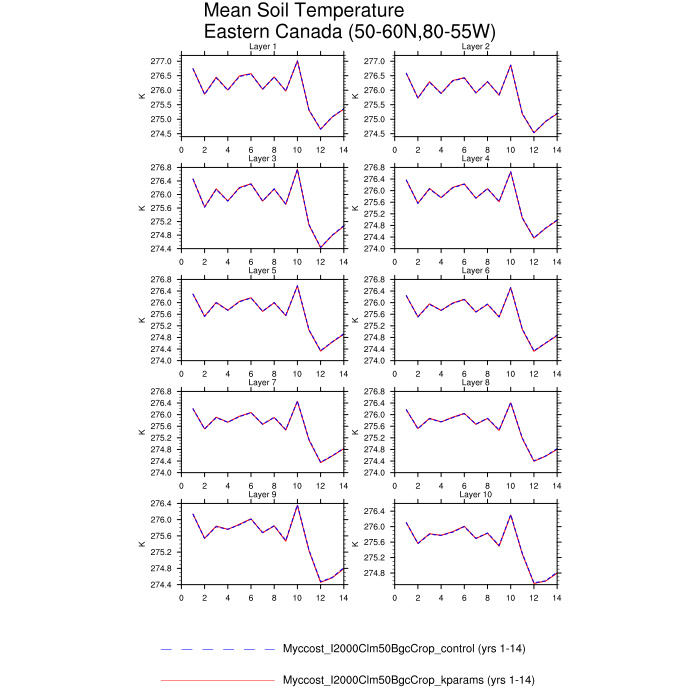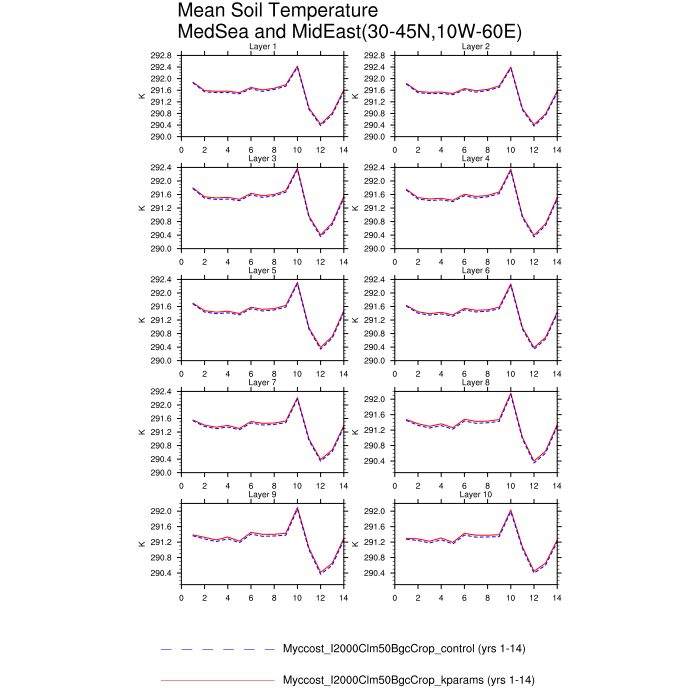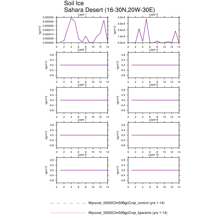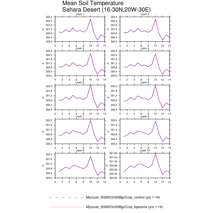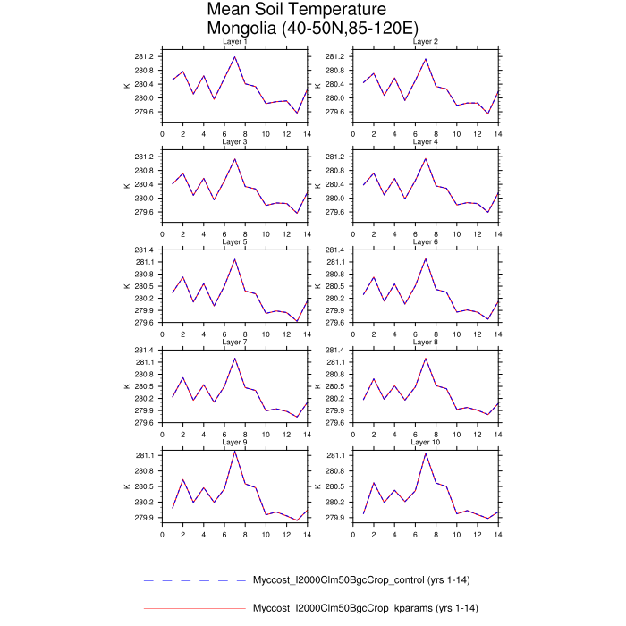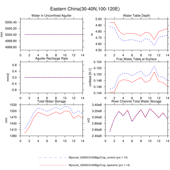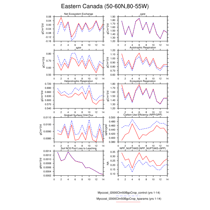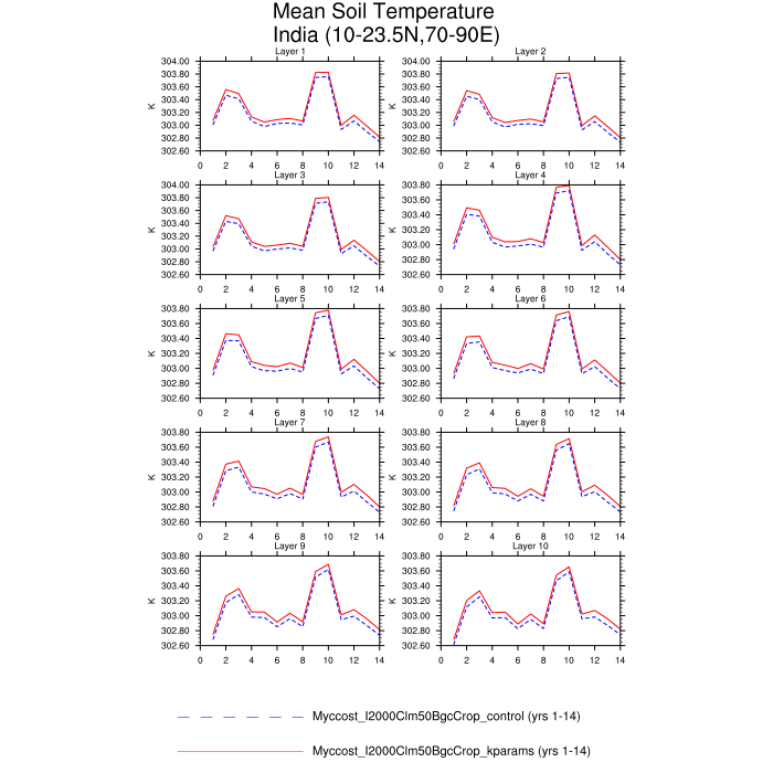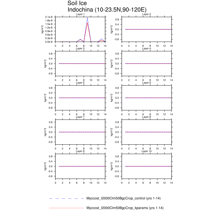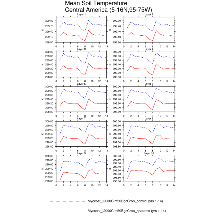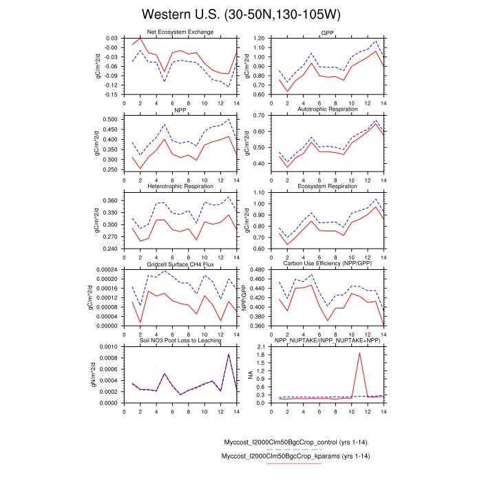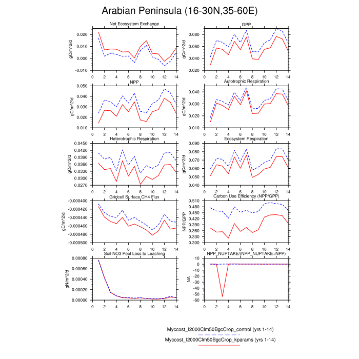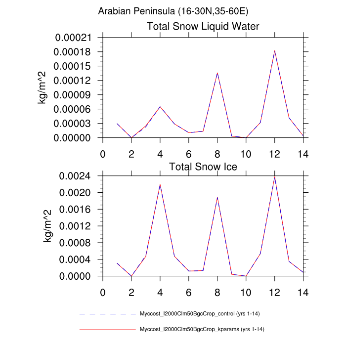 Set 6 Description: Line plots of annual trends in regional soil water/ice and temperature, runoff, snow water/ice, photosynthesis