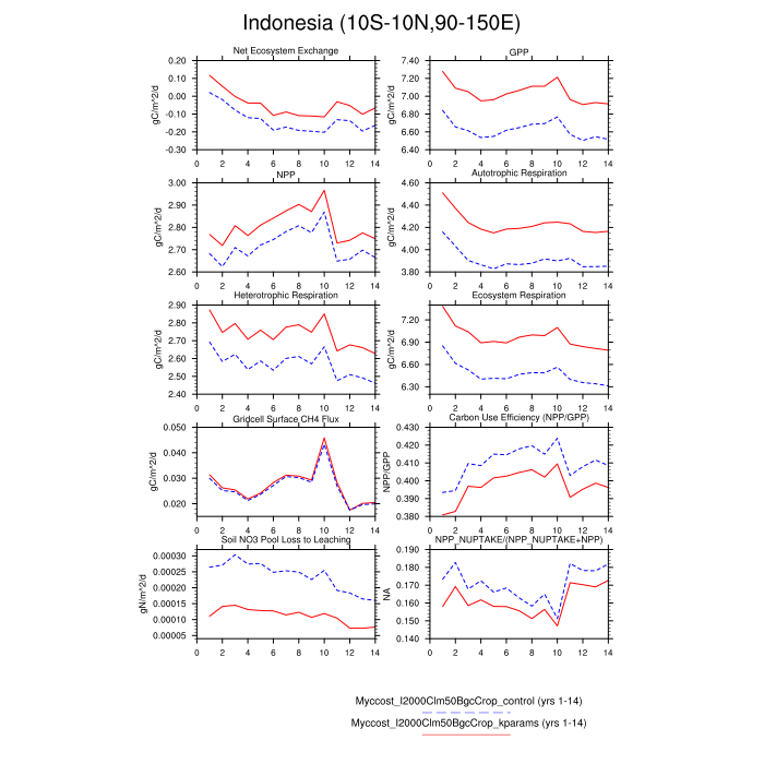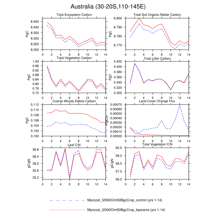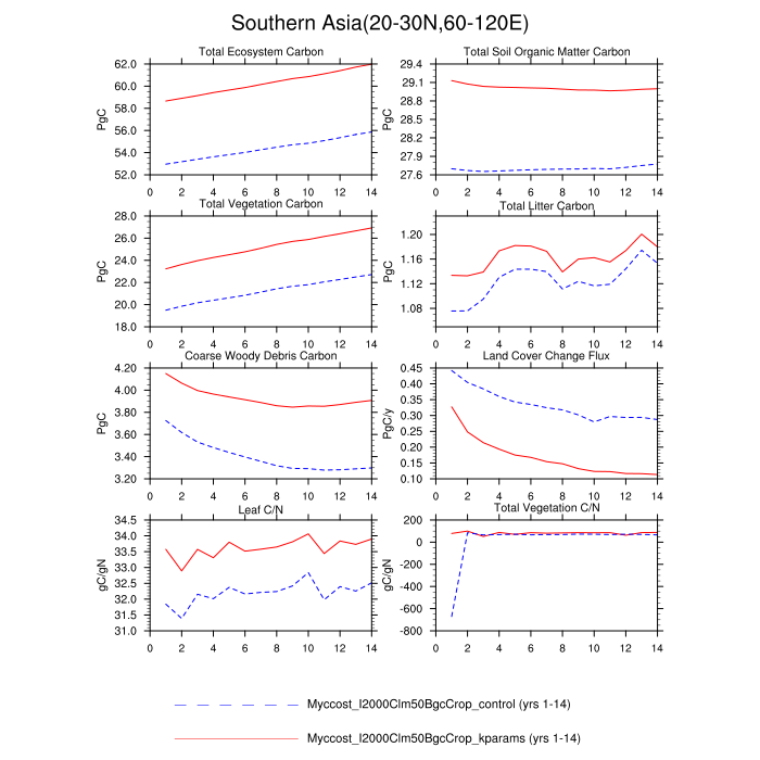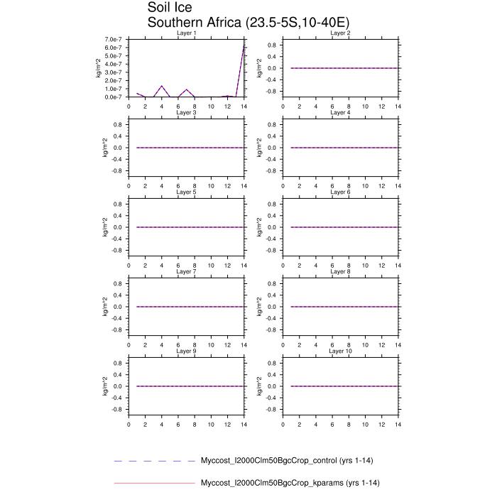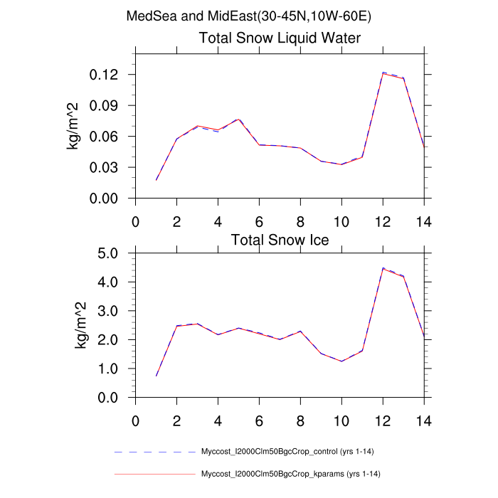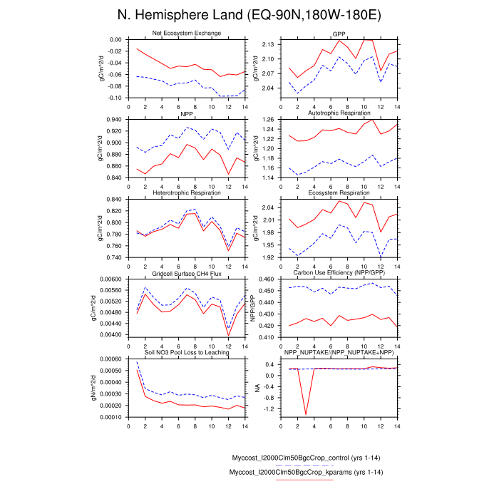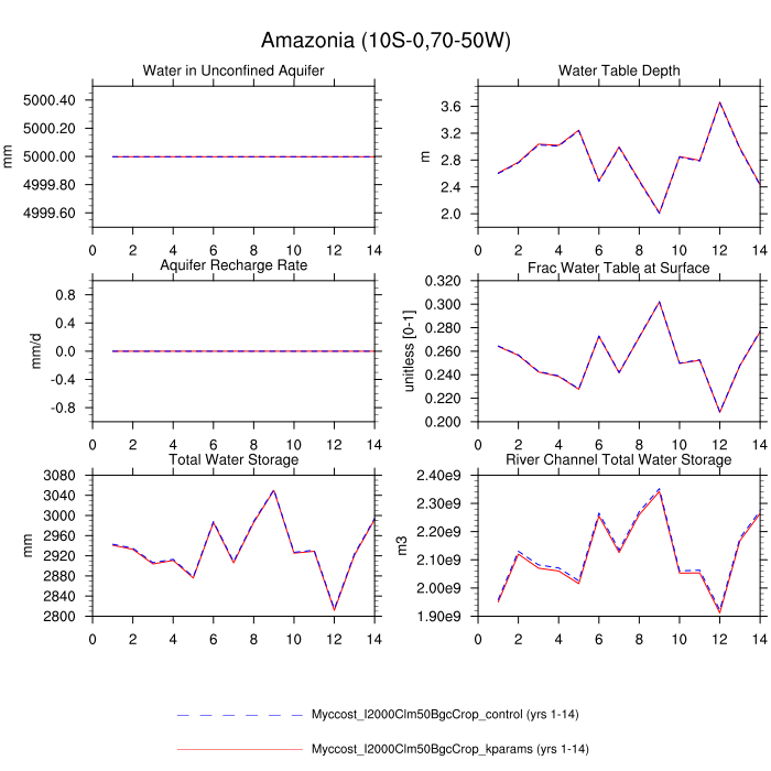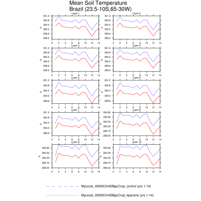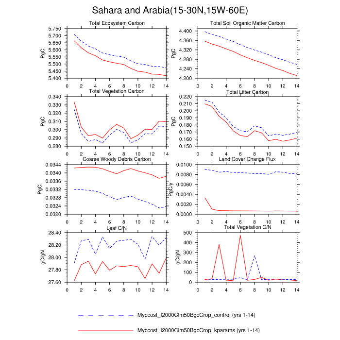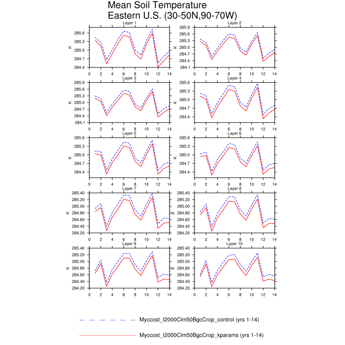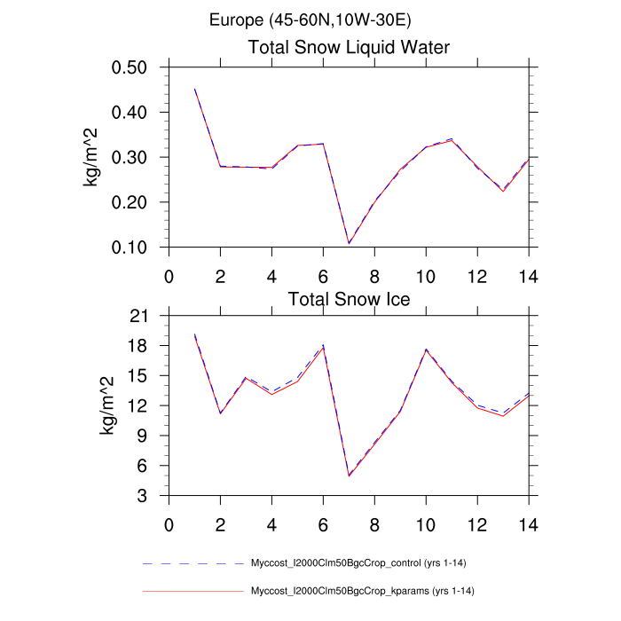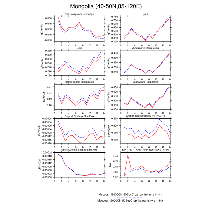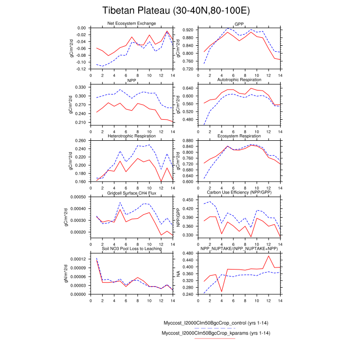 Set 6 Description: Line plots of annual trends in regional soil water/ice and temperature, runoff, snow water/ice, photosynthesis