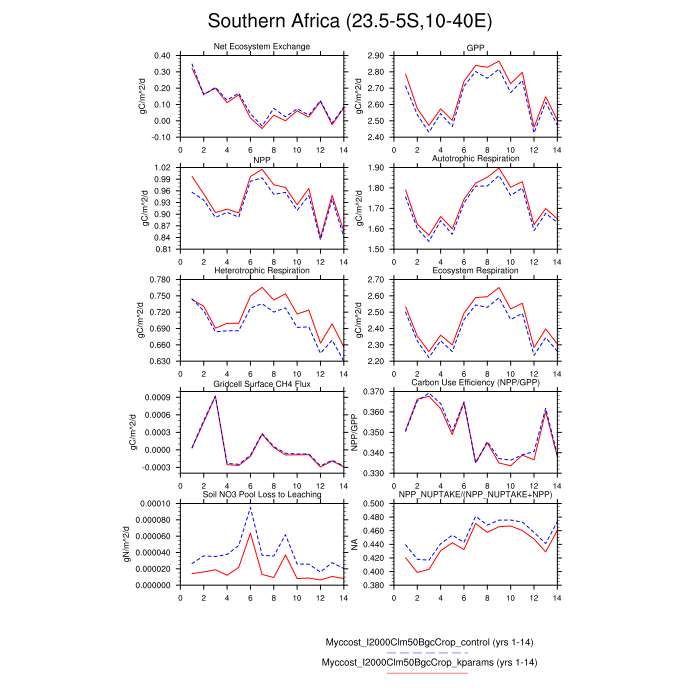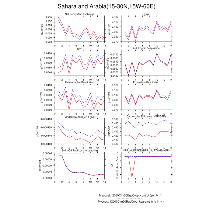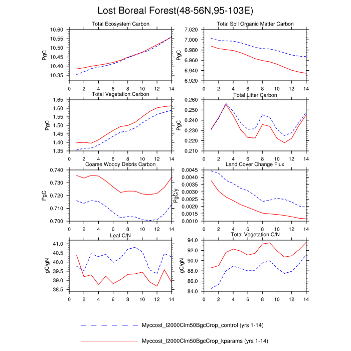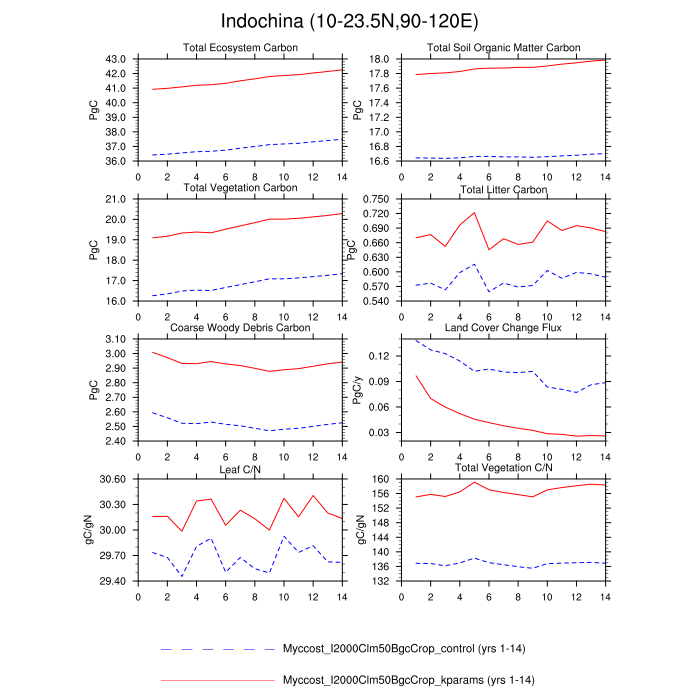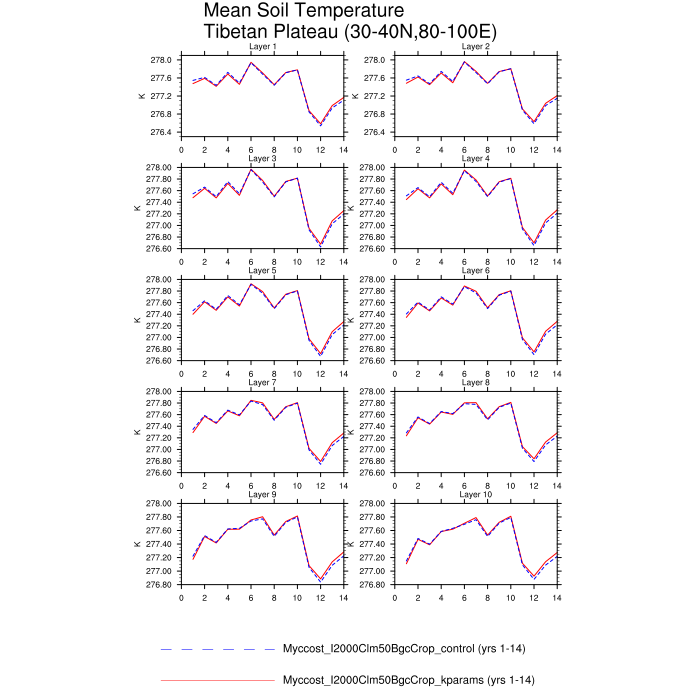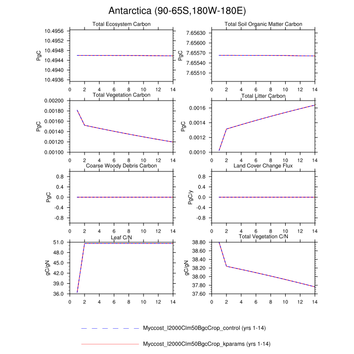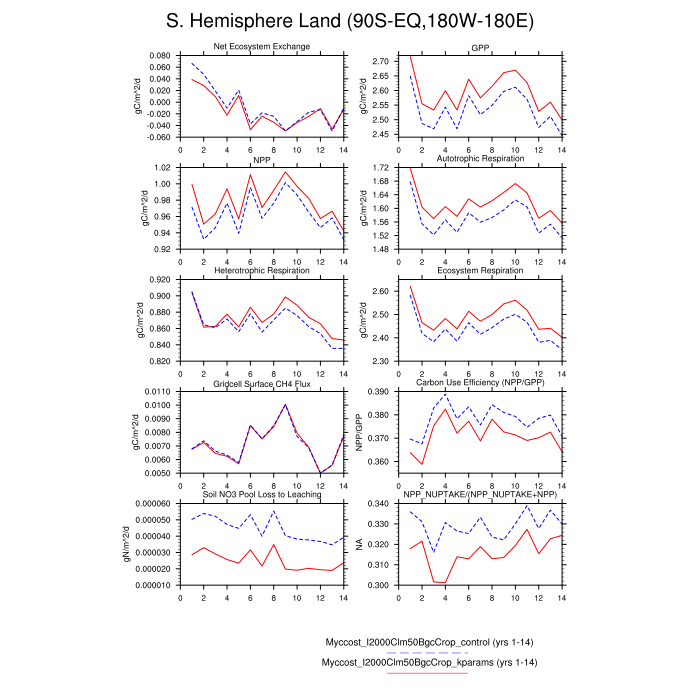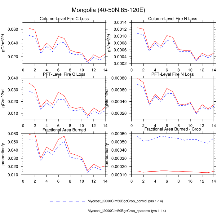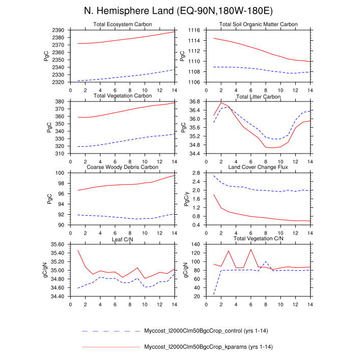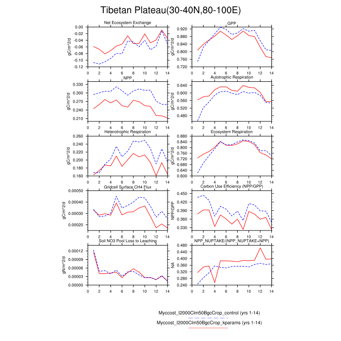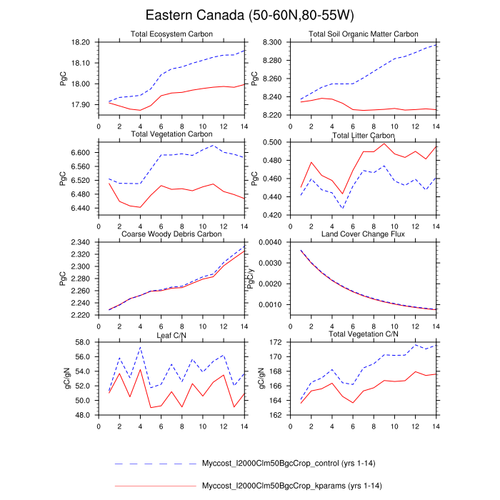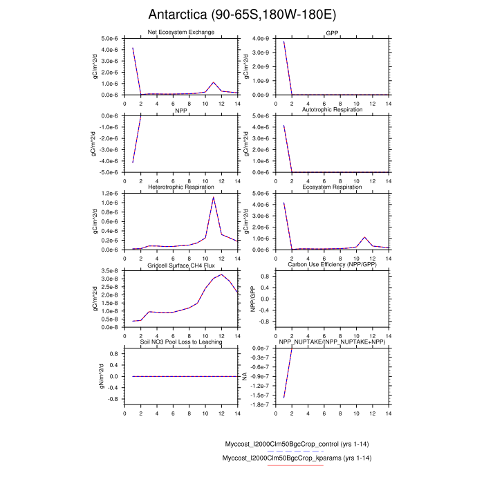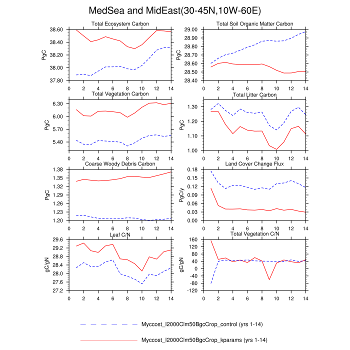 Set 6 Description: Line plots of annual trends in regional soil water/ice and temperature, runoff, snow water/ice, photosynthesis