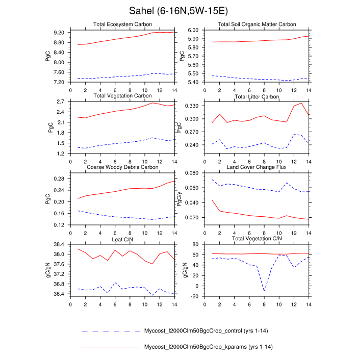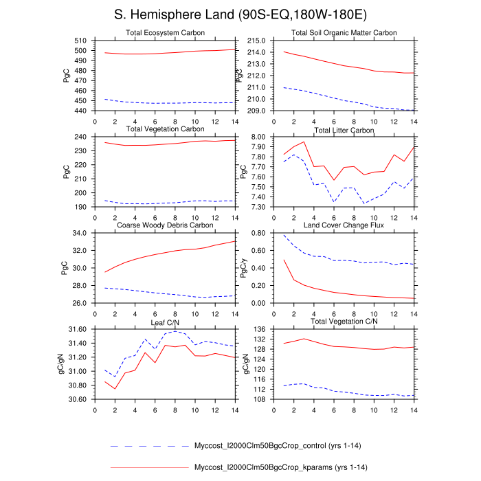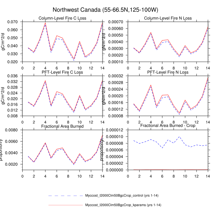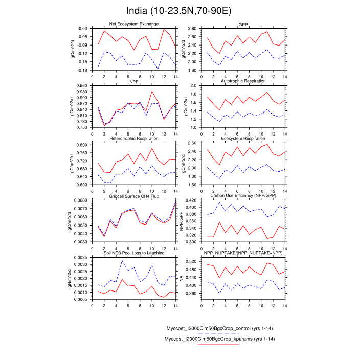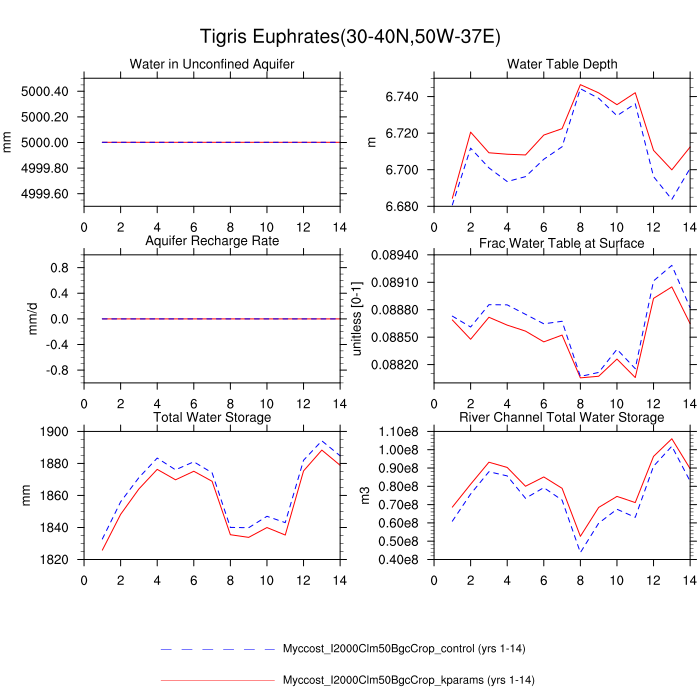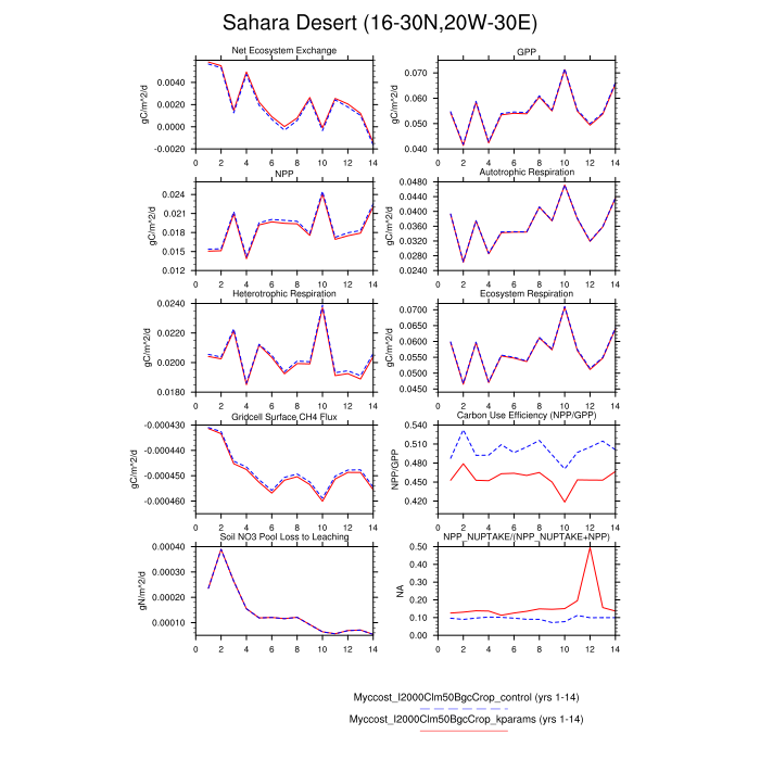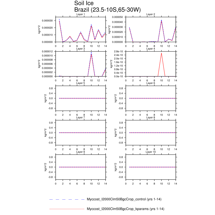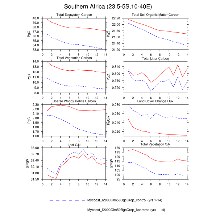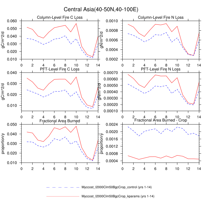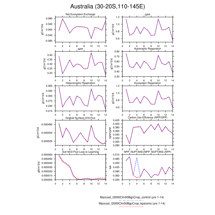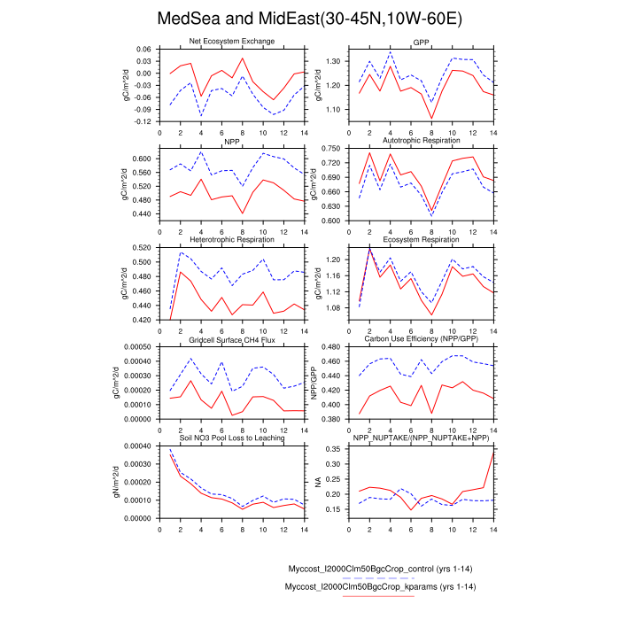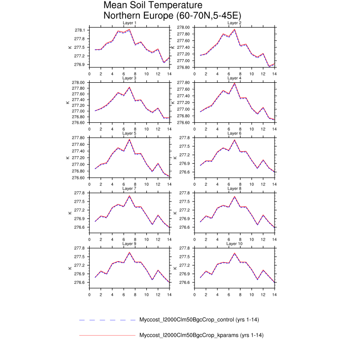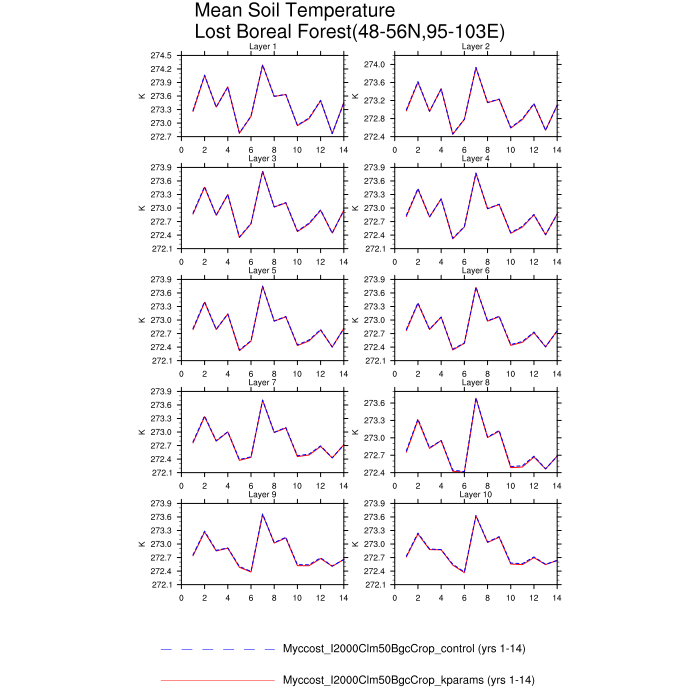 Set 6 Description: Line plots of annual trends in regional soil water/ice and temperature, runoff, snow water/ice, photosynthesis