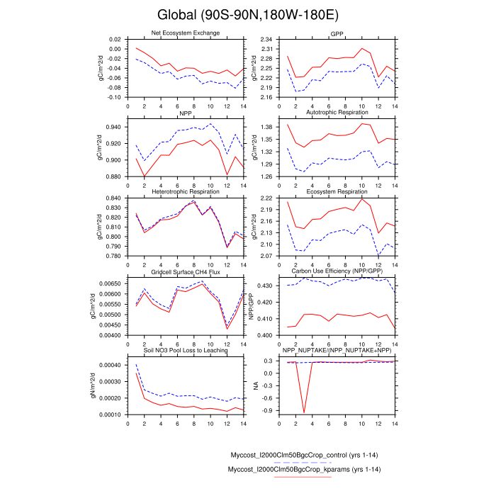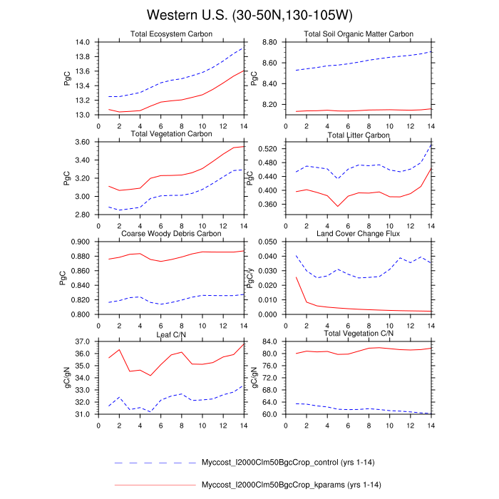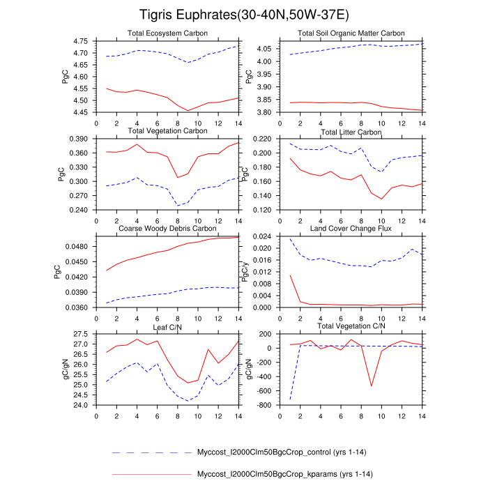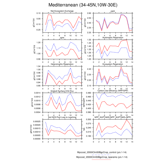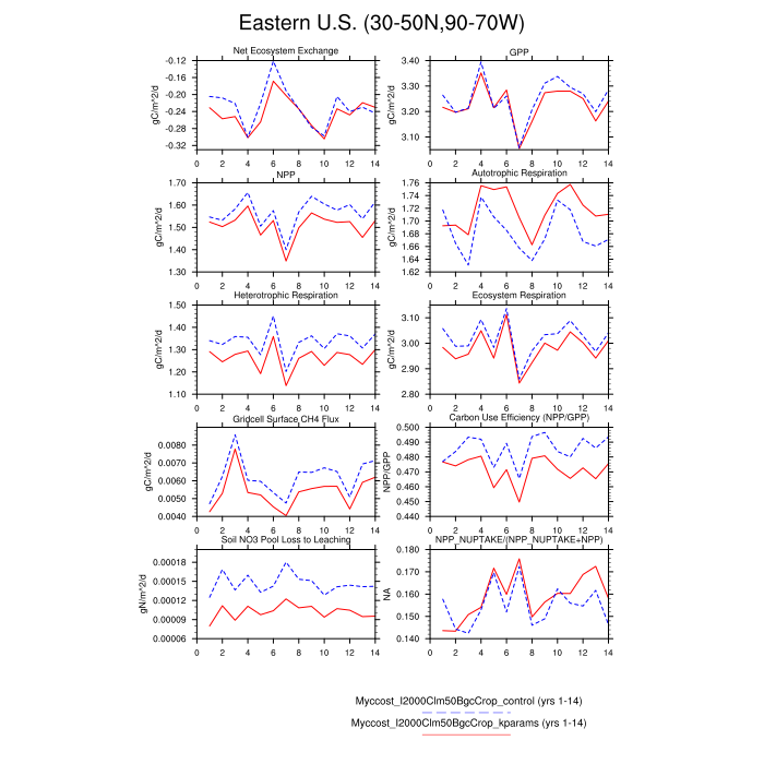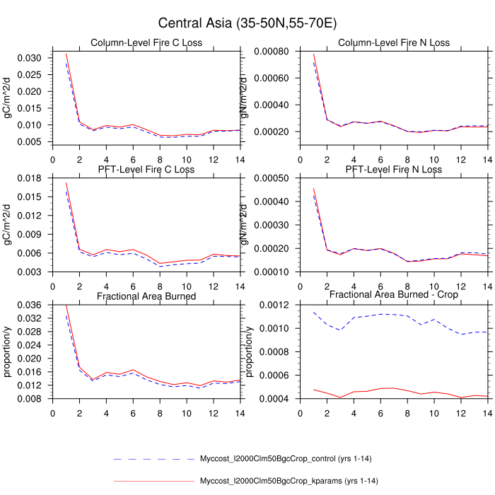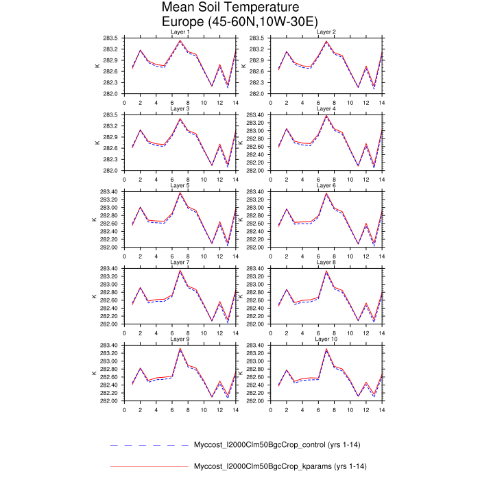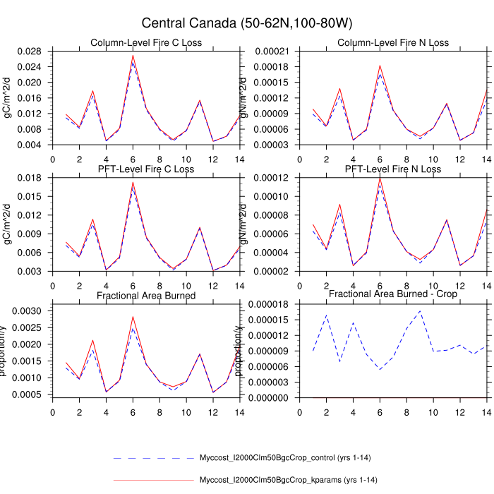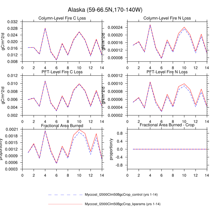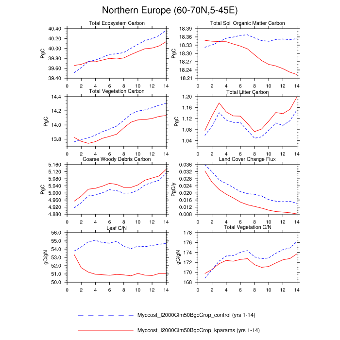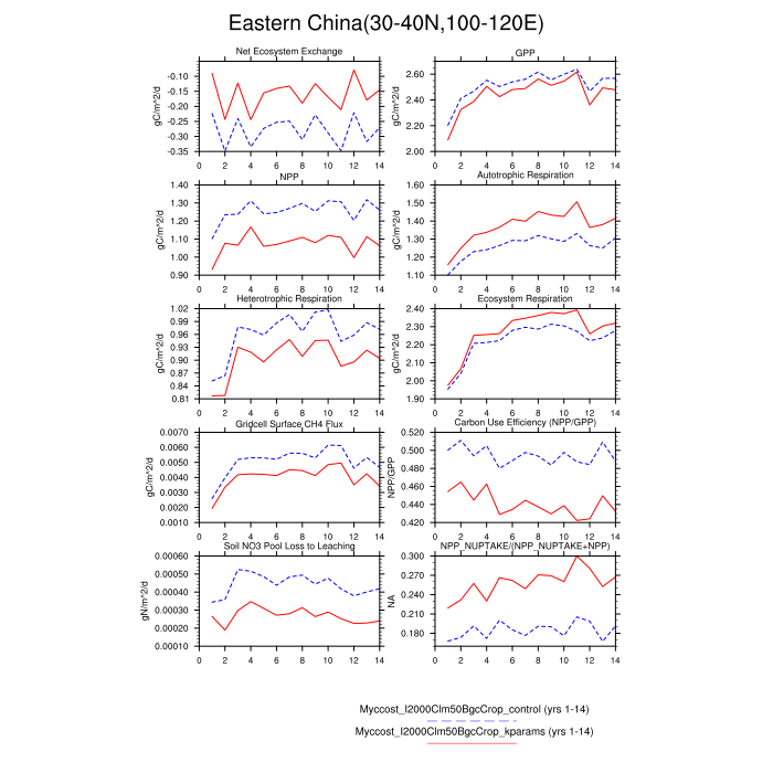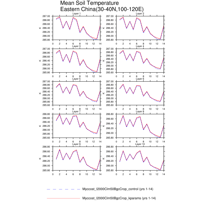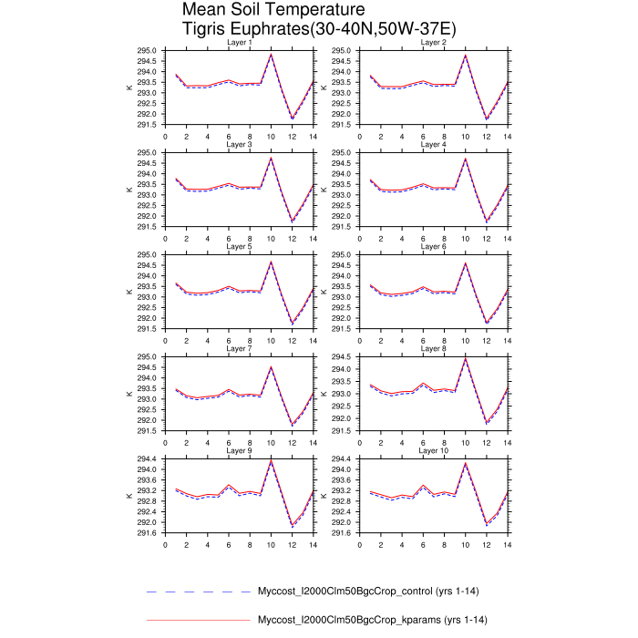 Set 6 Description: Line plots of annual trends in regional soil water/ice and temperature, runoff, snow water/ice, photosynthesis