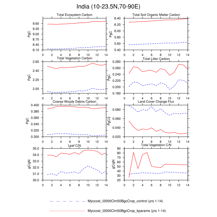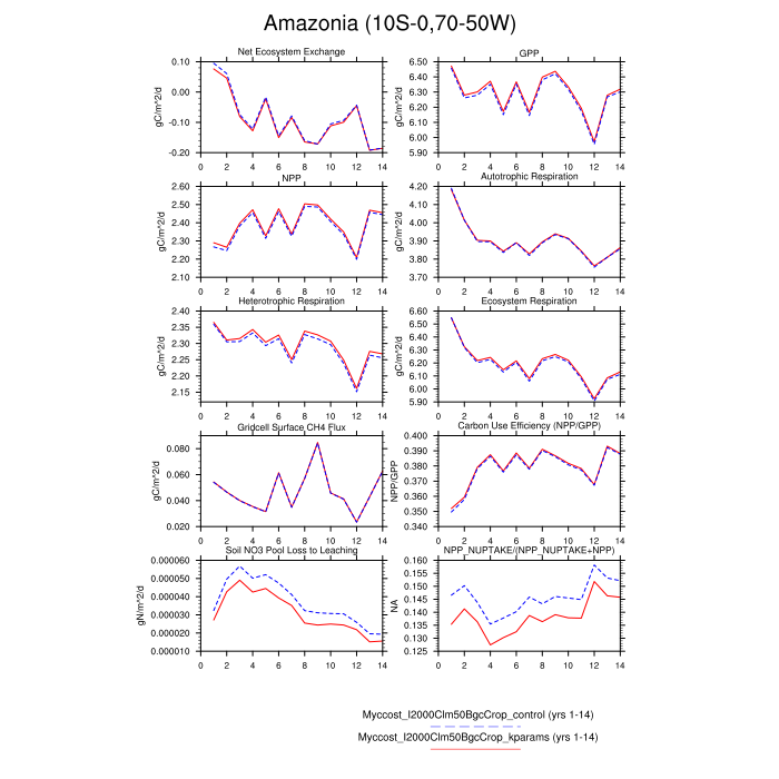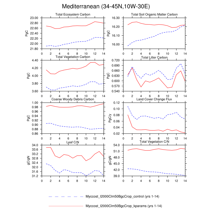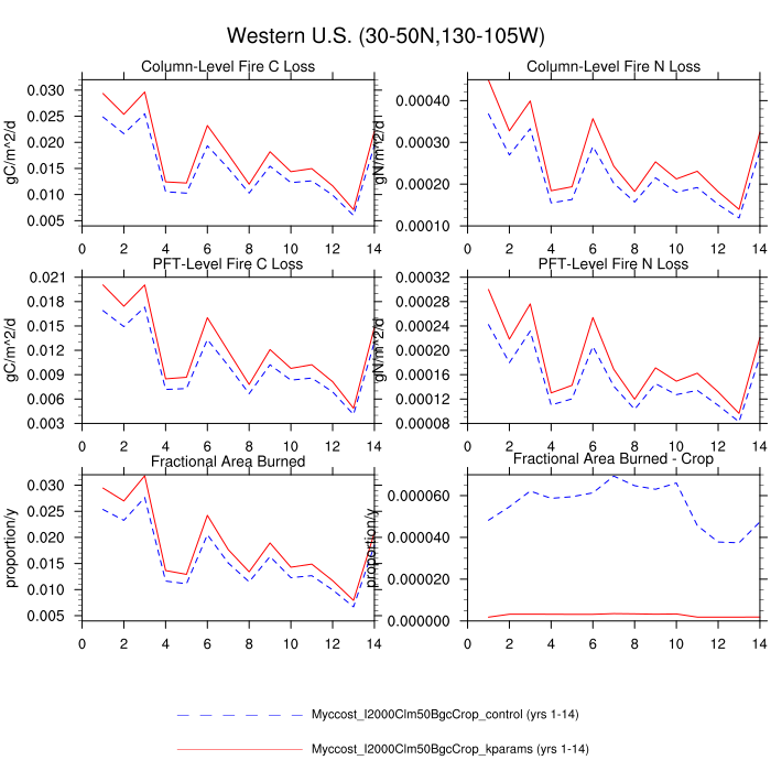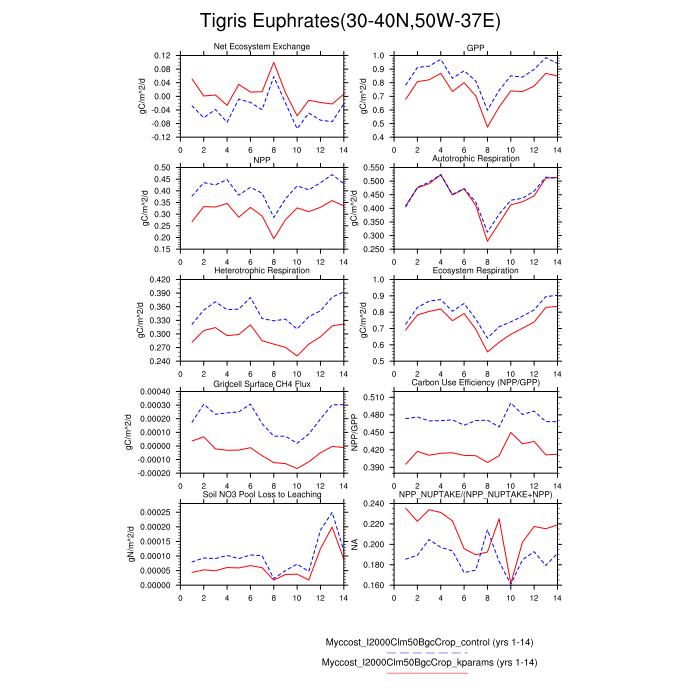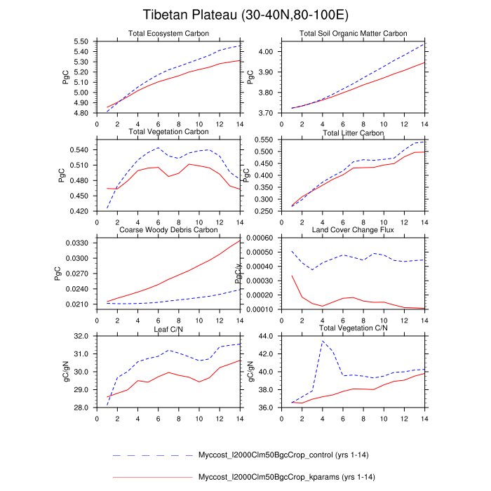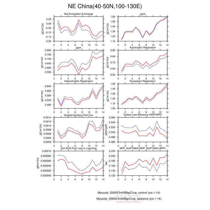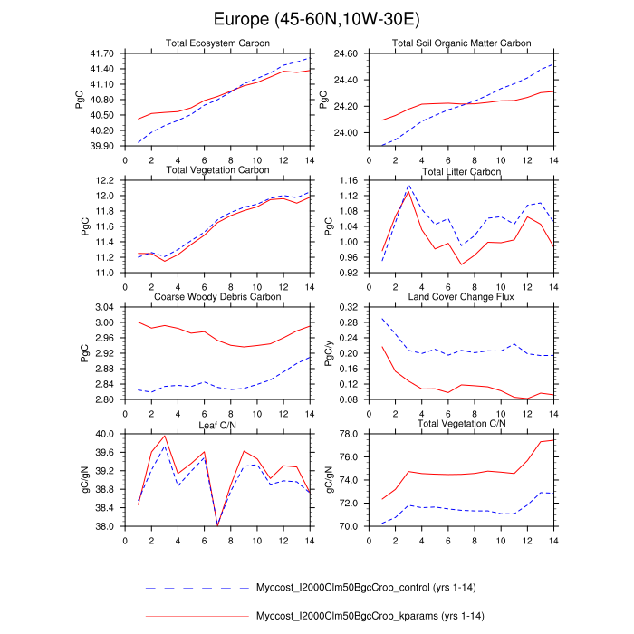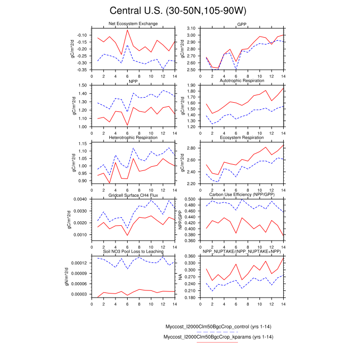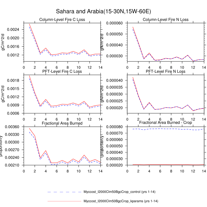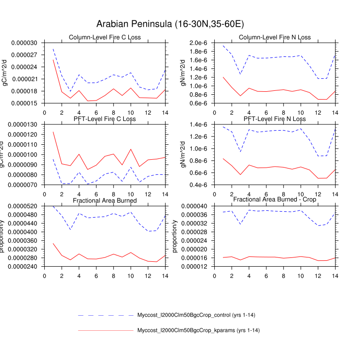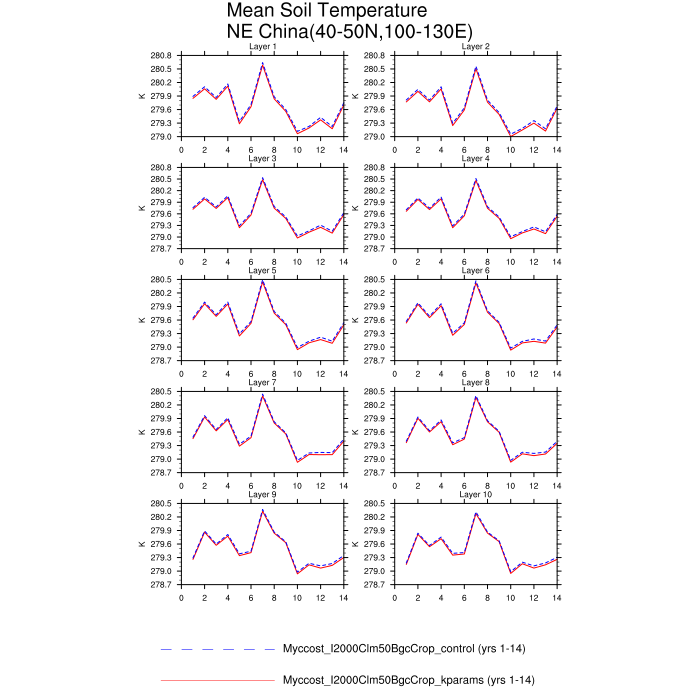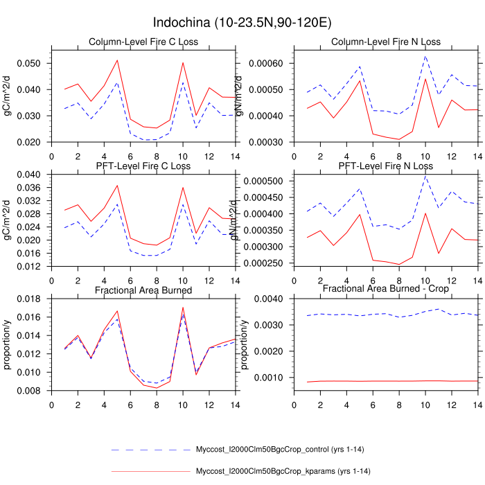Set 6 Description: Line plots of annual trends in regional soil water/ice and temperature, runoff, snow water/ice, photosynthesis