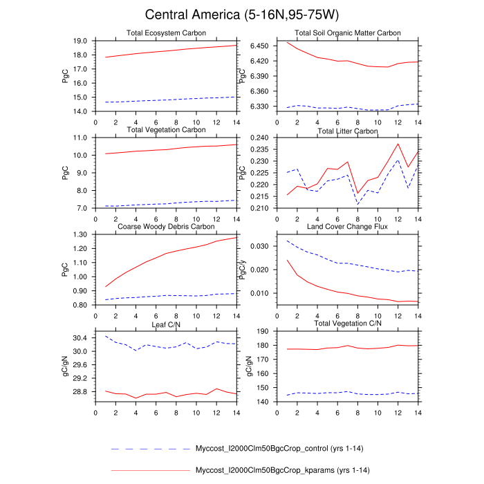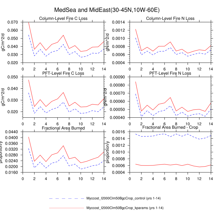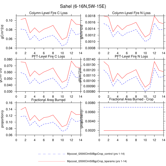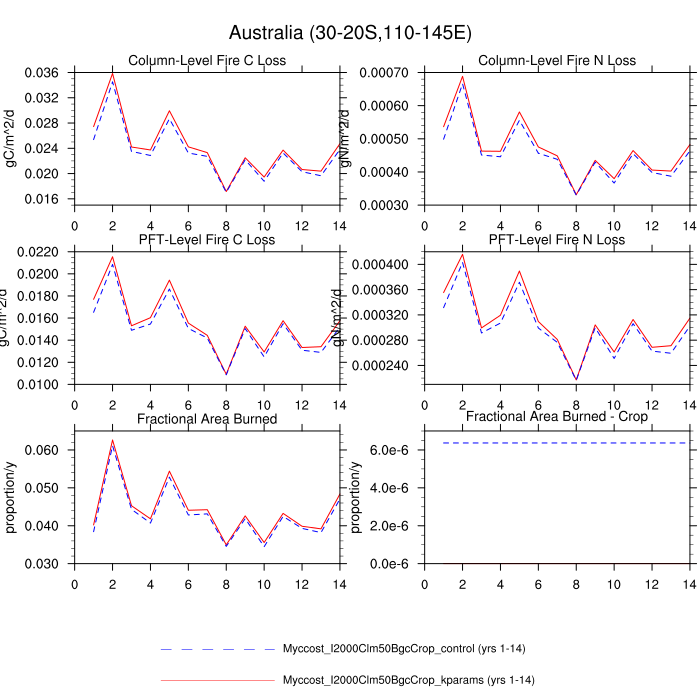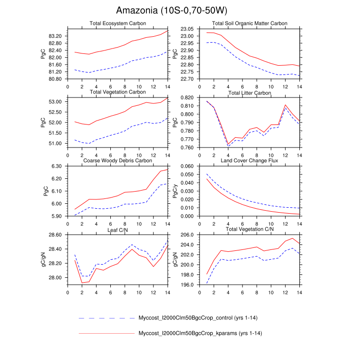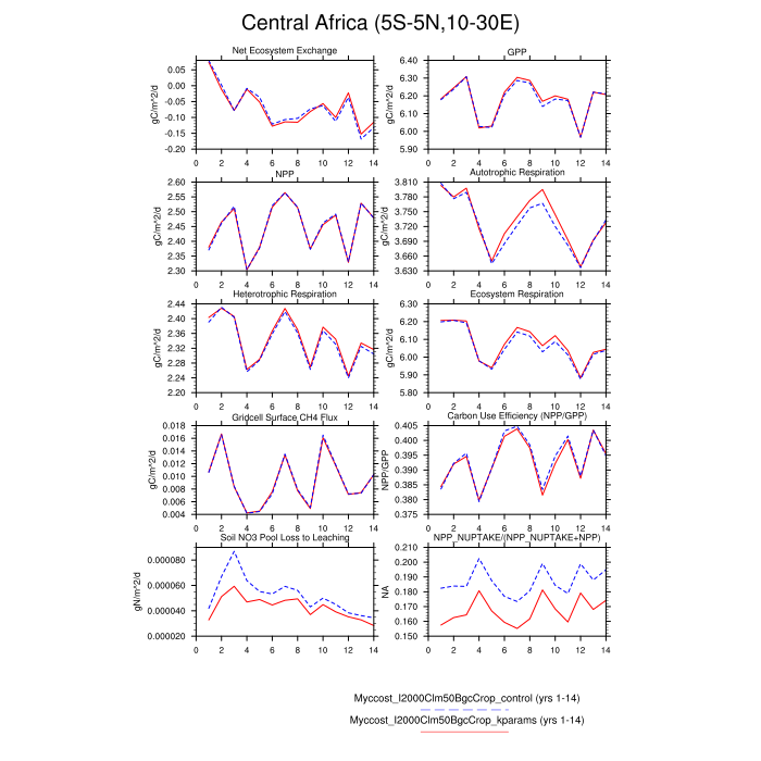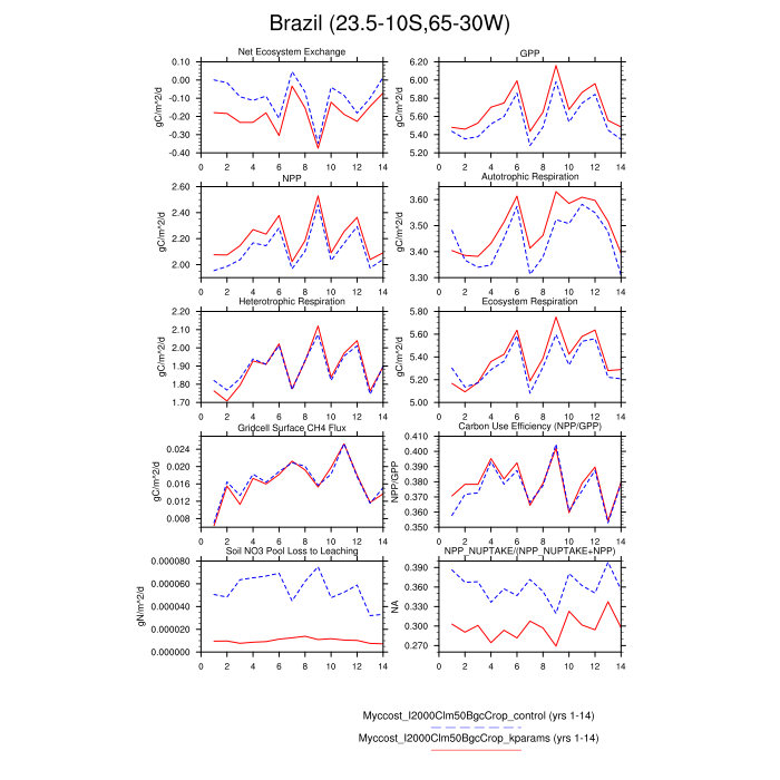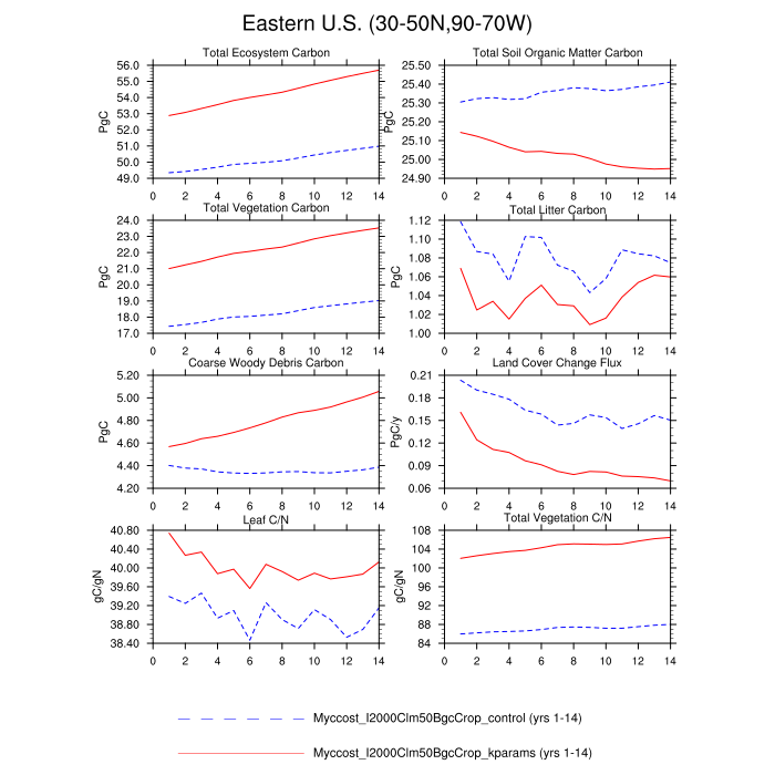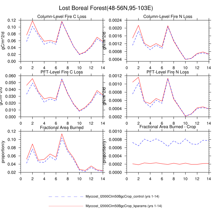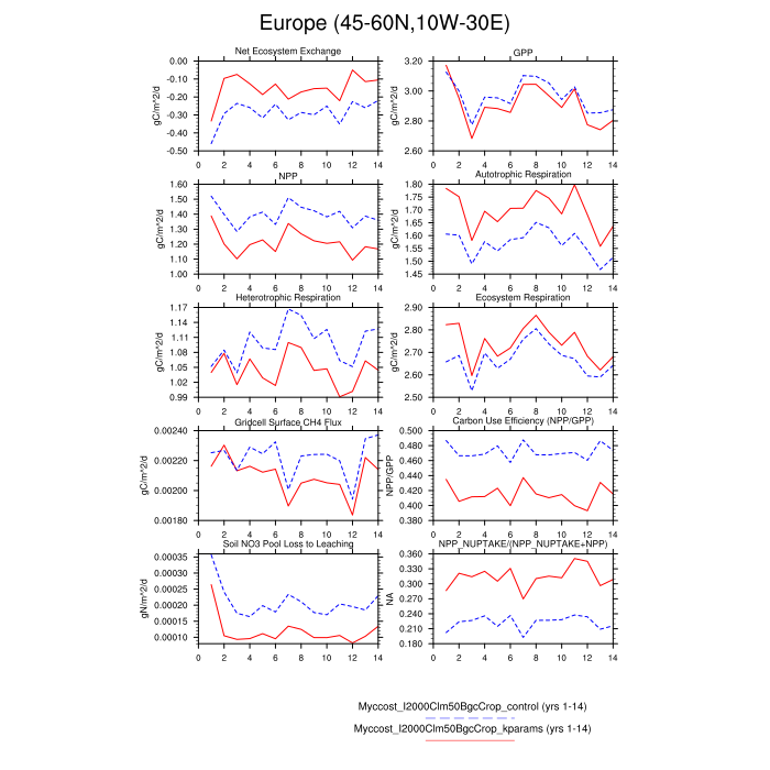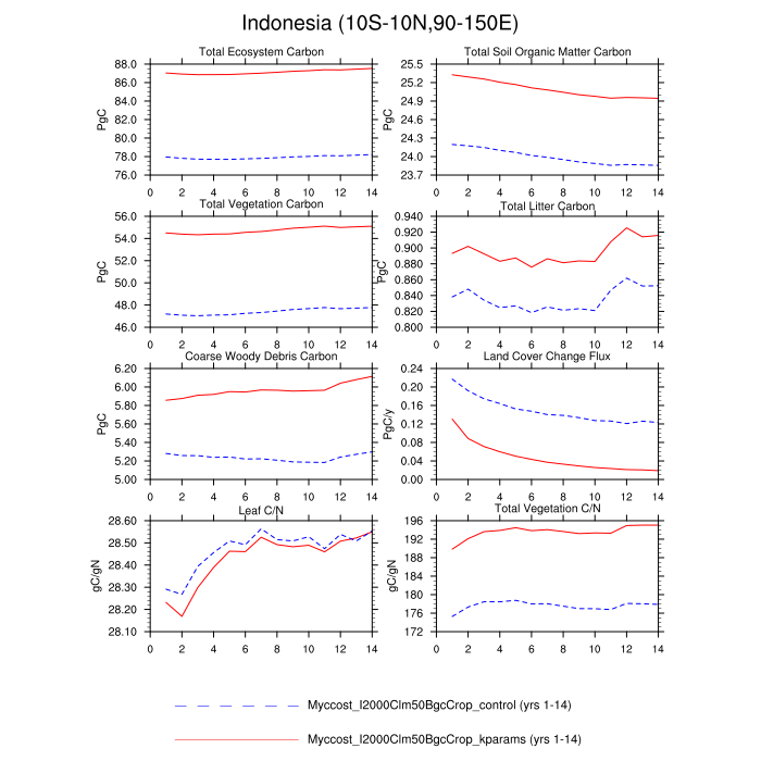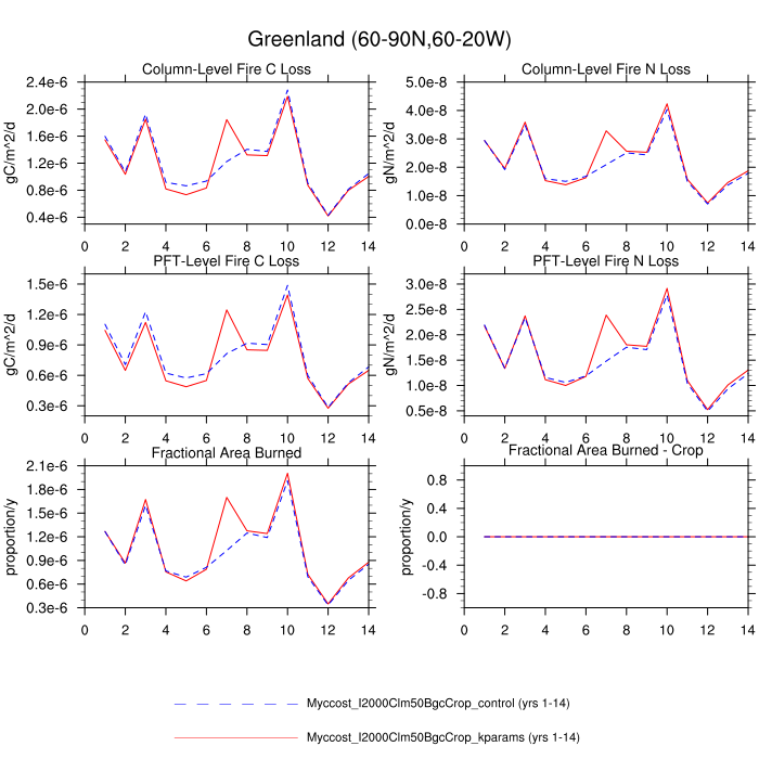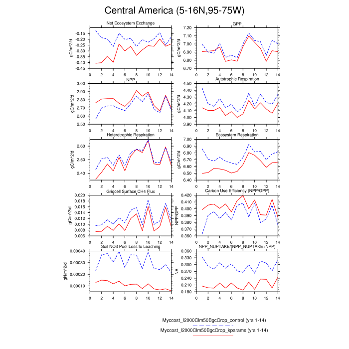 Set 6 Description: Line plots of annual trends in regional soil water/ice and temperature, runoff, snow water/ice, photosynthesis