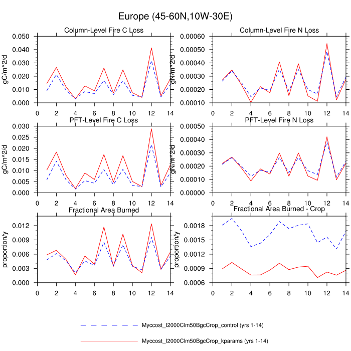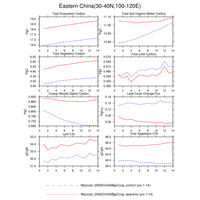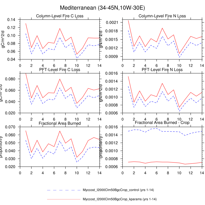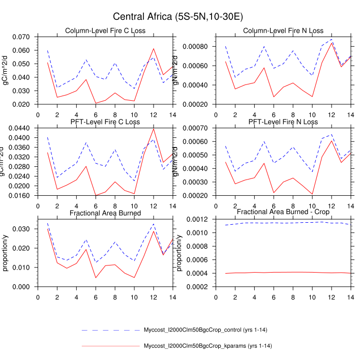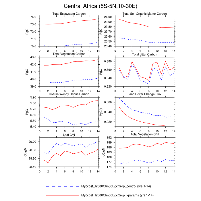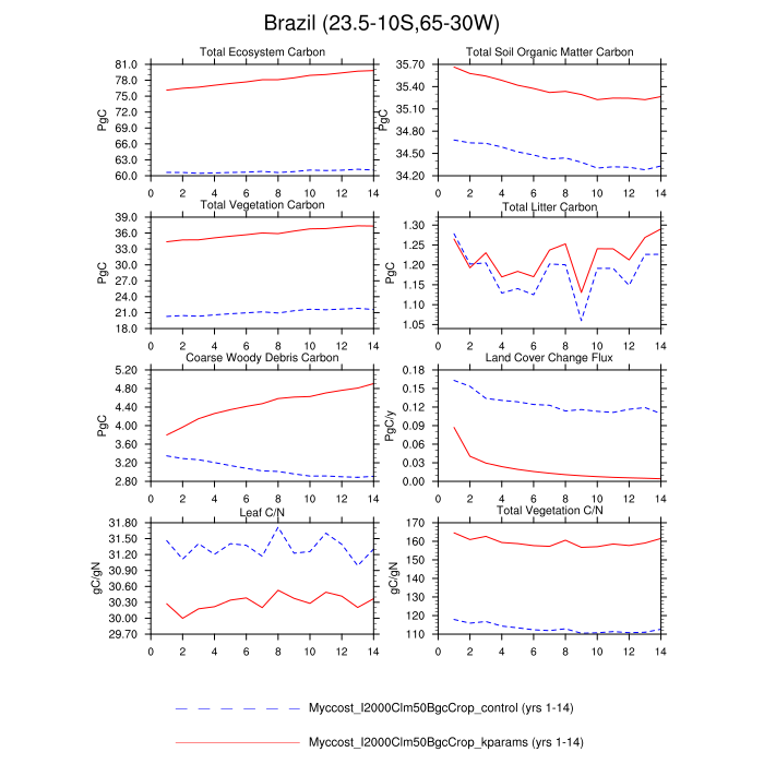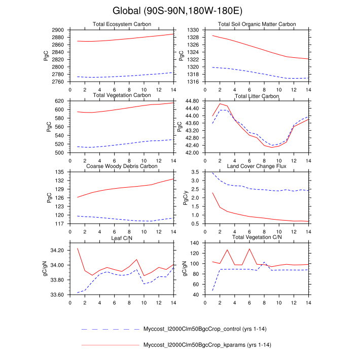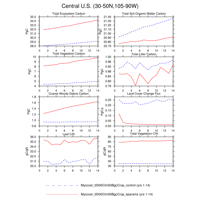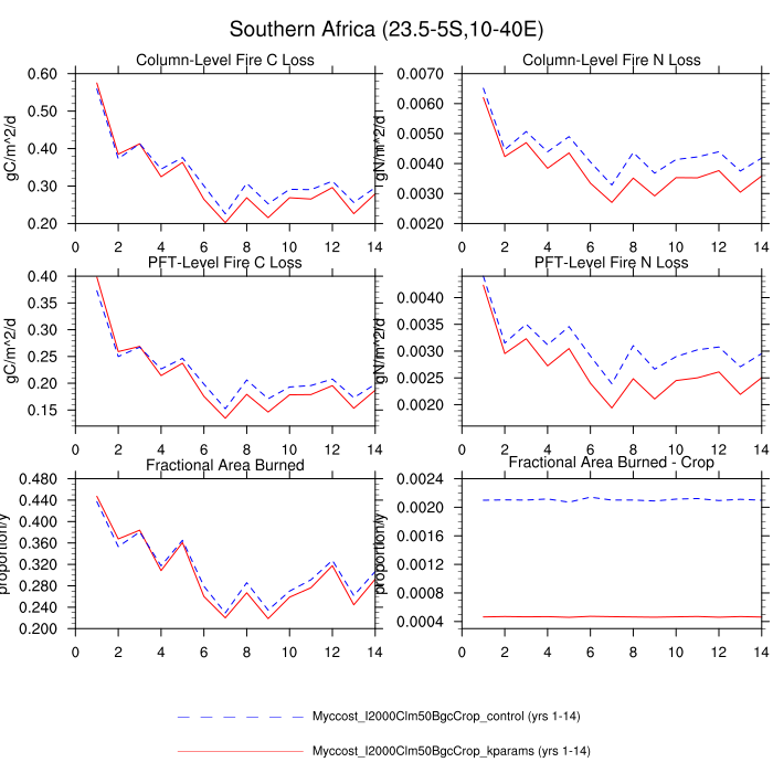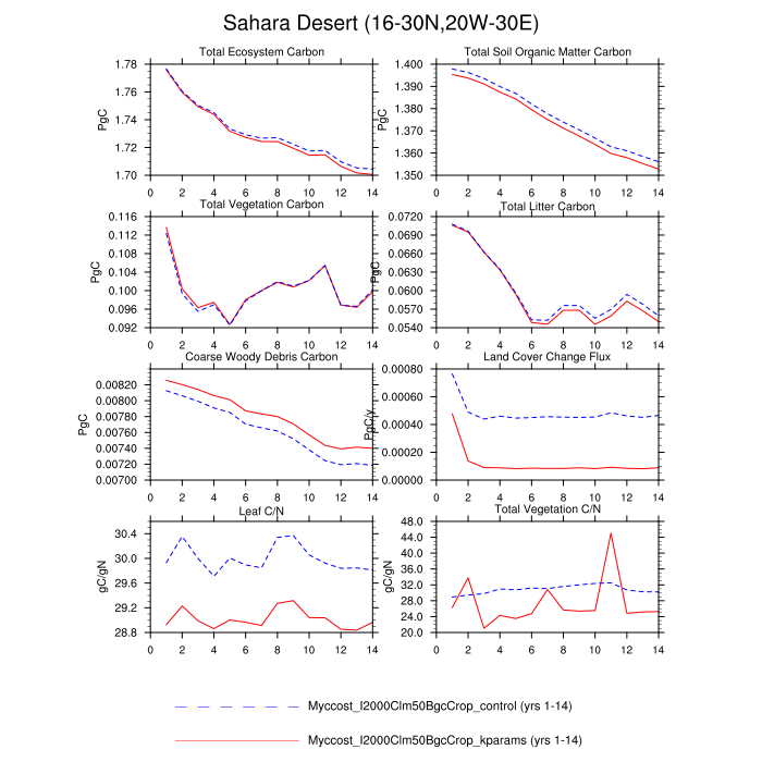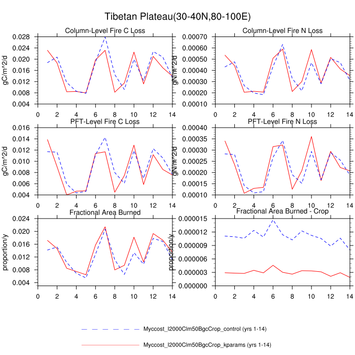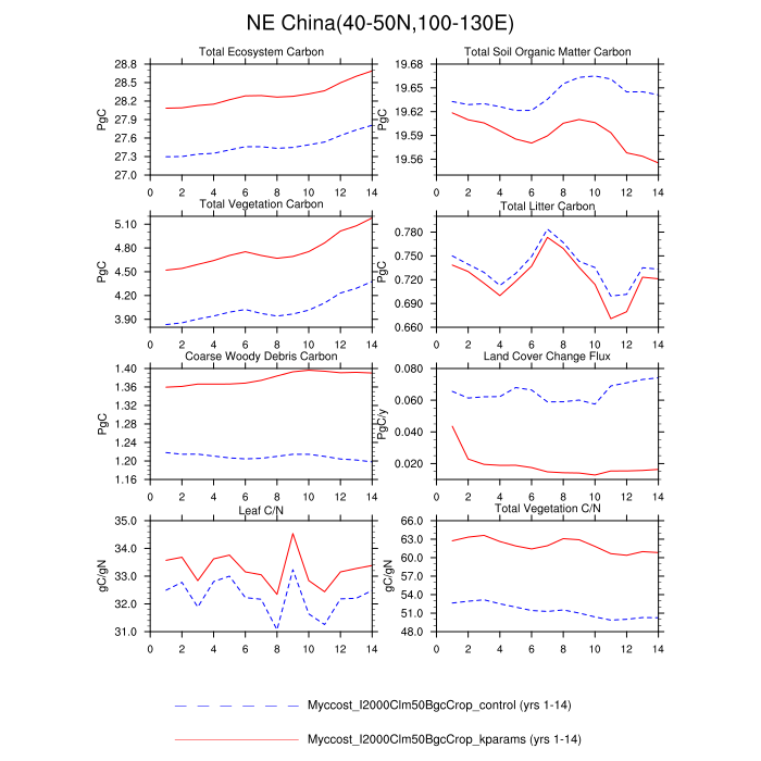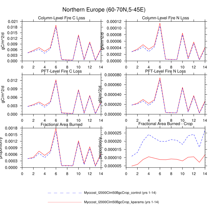Set 6 Description: Line plots of annual trends in regional soil water/ice and temperature, runoff, snow water/ice, photosynthesis