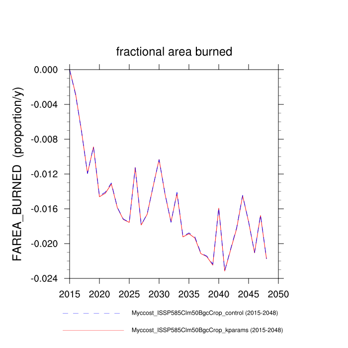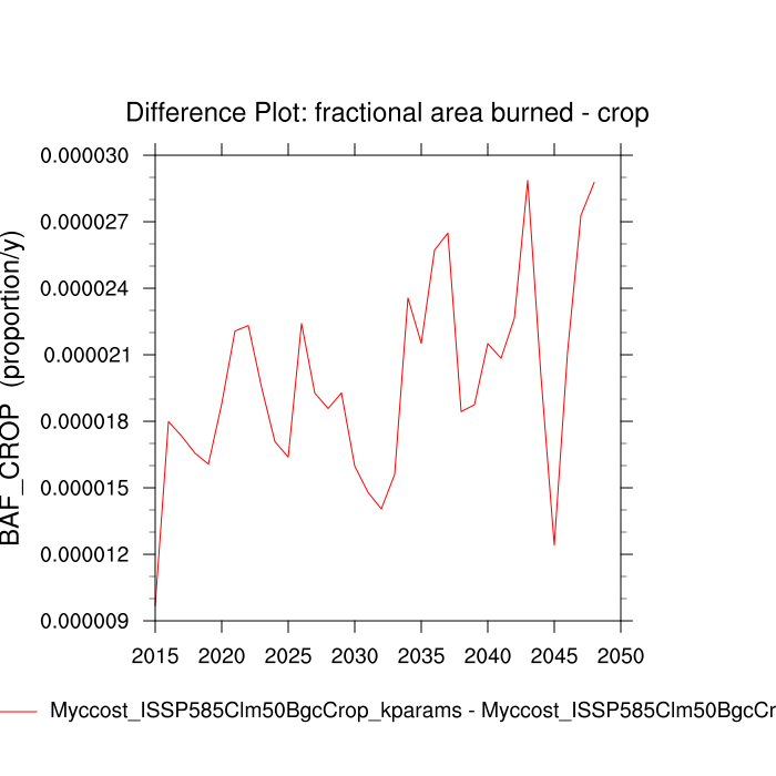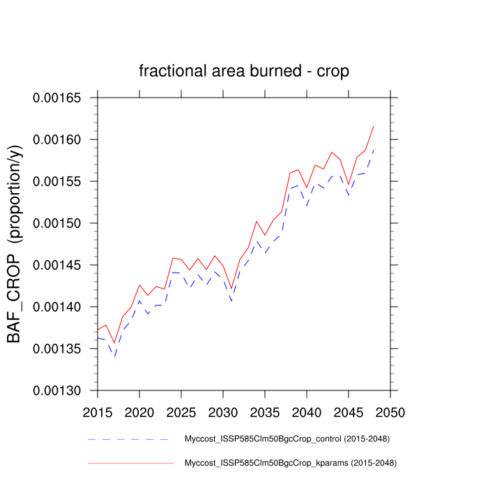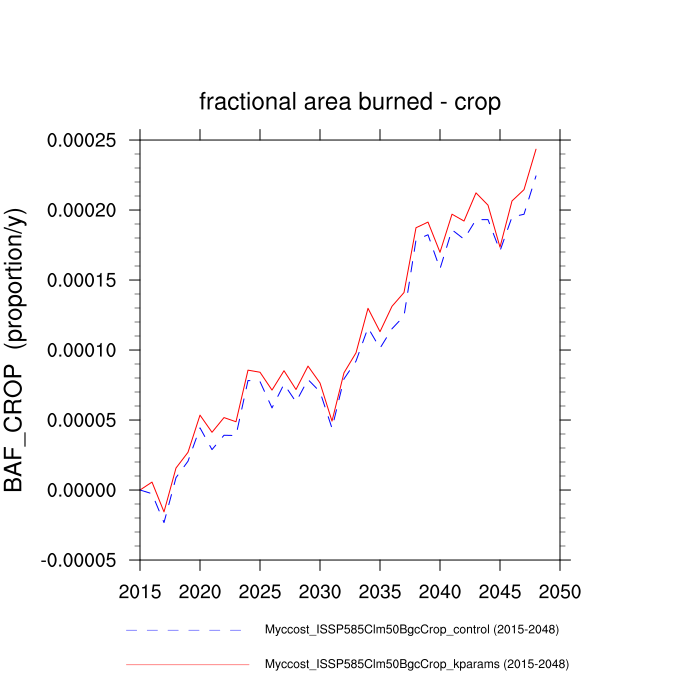 | fractional area burned - crop (BAF_CROP) | TrendPlot | DifferencePlot | AnomalyPlot | ||