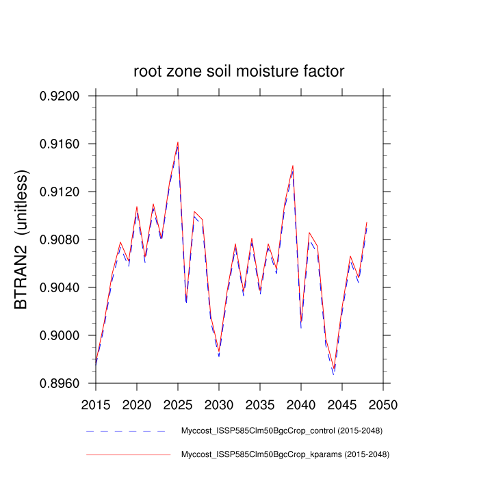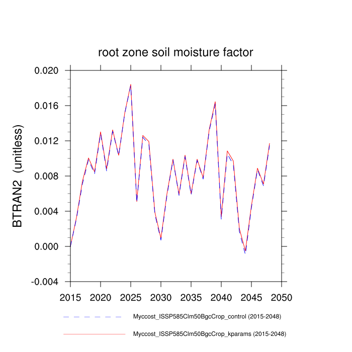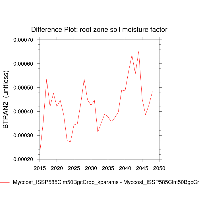 | root zone soil moisture factor (BTRAN2) | TrendPlot | DifferencePlot | AnomalyPlot | ||