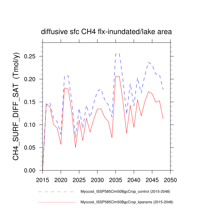 | diffusive sfc CH4 flx-inundated/lake area (CH4_SURF_DIFF_SAT) | TrendPlot | DifferencePlot | AnomalyPlot | ||