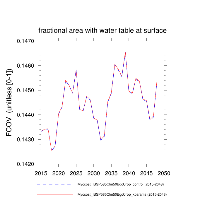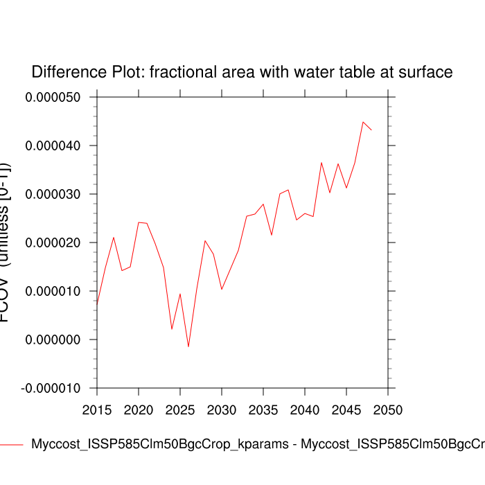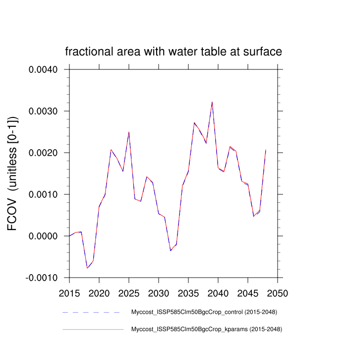 | fractional area with water table at surface (FCOV) | TrendPlot | DifferencePlot | AnomalyPlot | ||
