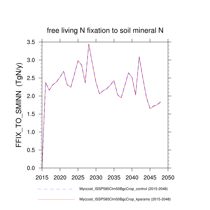 | free living N fixation to soil mineral N (FFIX_TO_SMINN) | TrendPlot | DifferencePlot | AnomalyPlot | ||