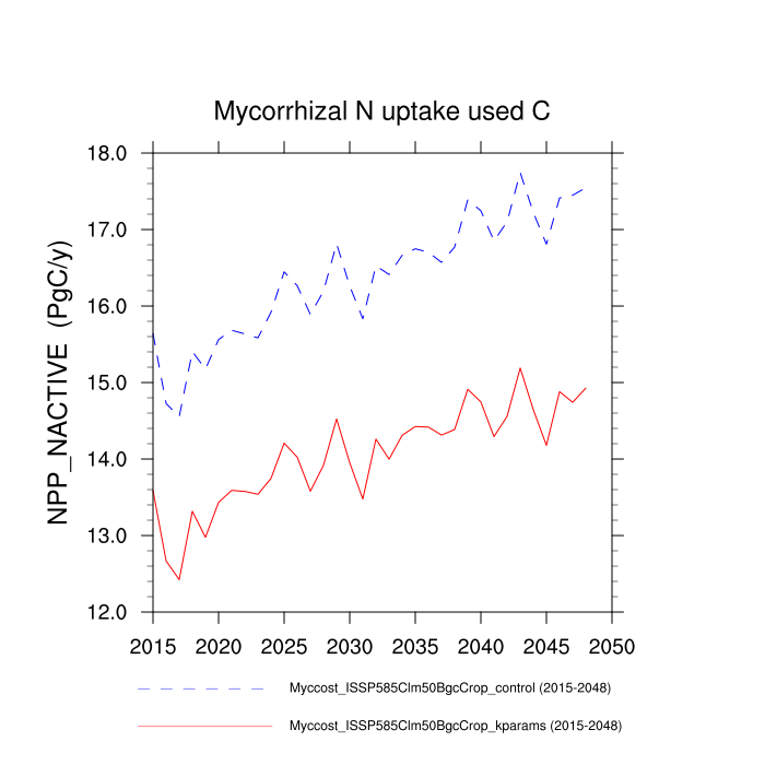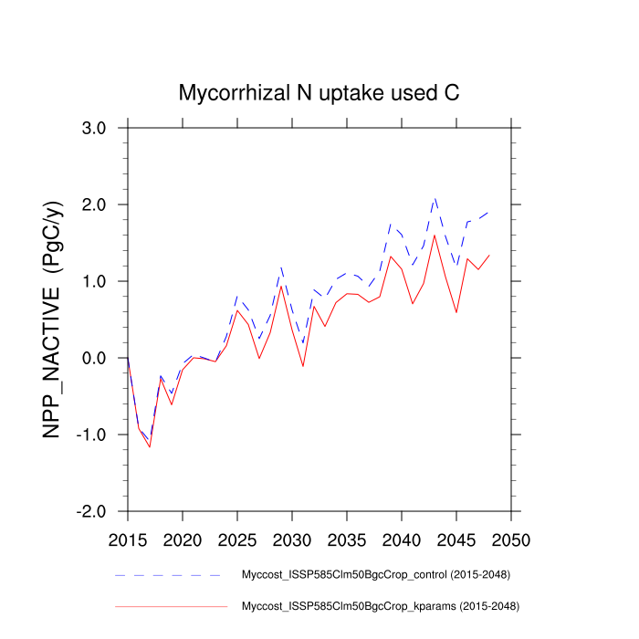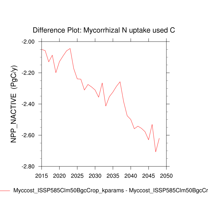 | Mycorrhizal N uptake used C (NPP_NACTIVE) | TrendPlot | DifferencePlot | AnomalyPlot | ||