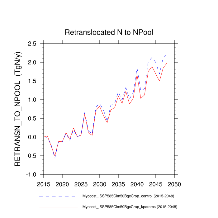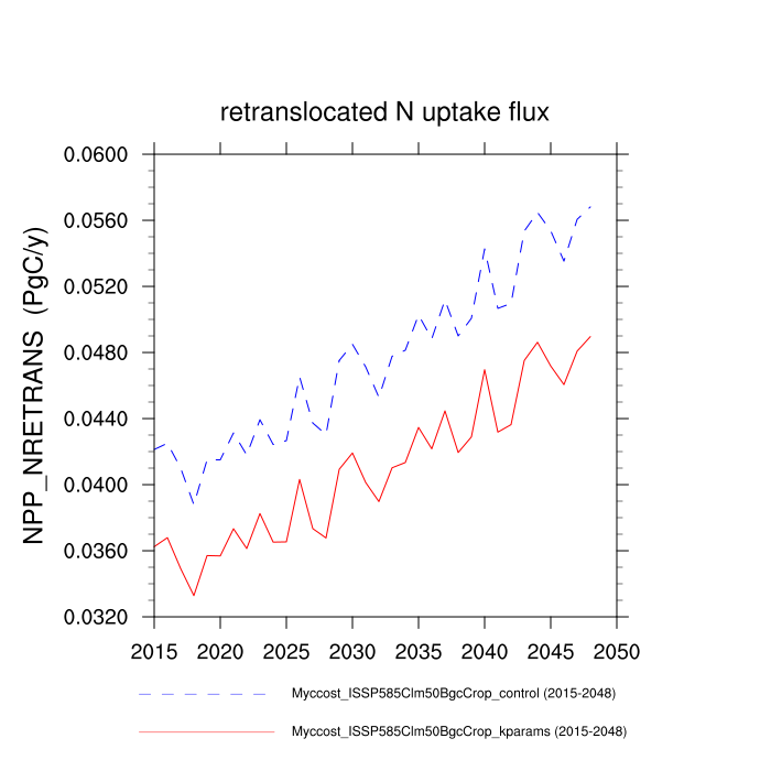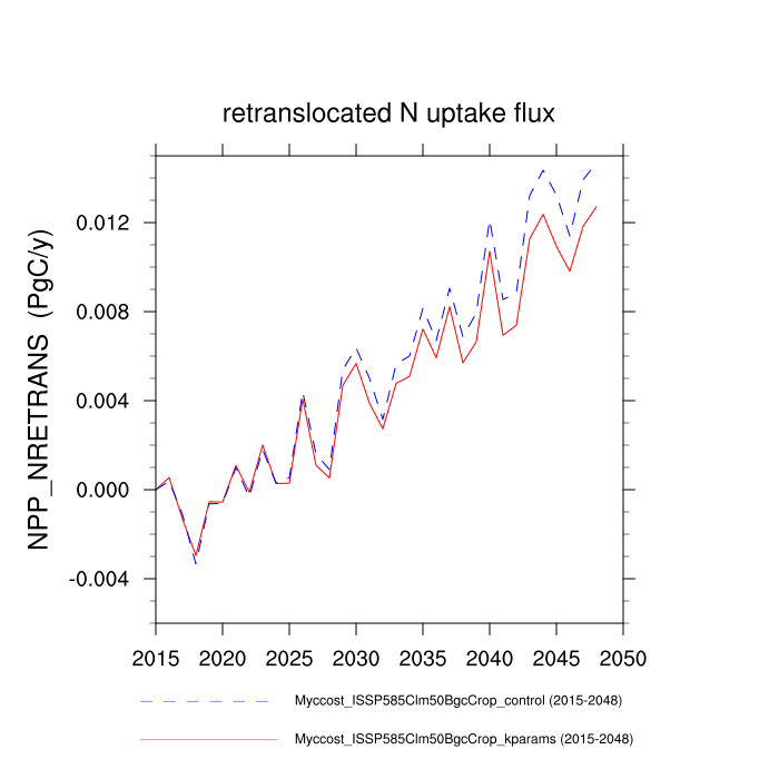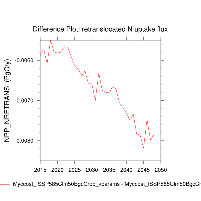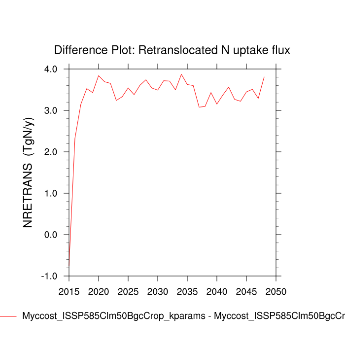 | retranslocated N uptake flux (NPP_NRETRANS) | TrendPlot | DifferencePlot | AnomalyPlot | ||