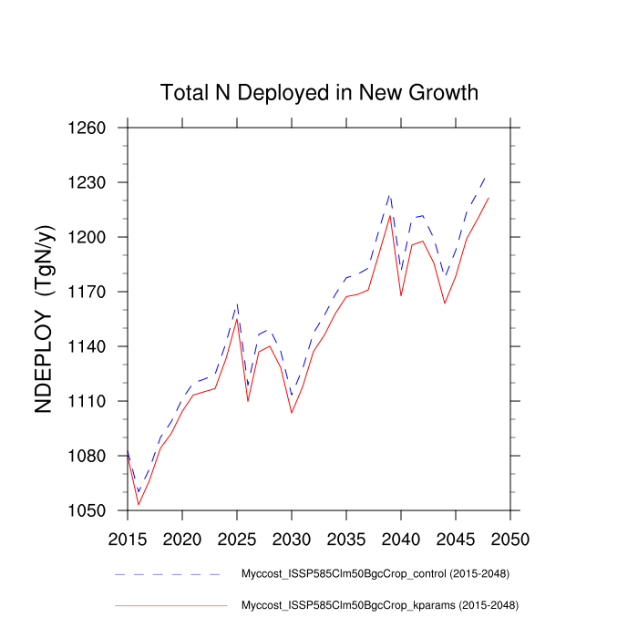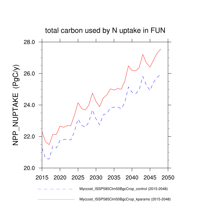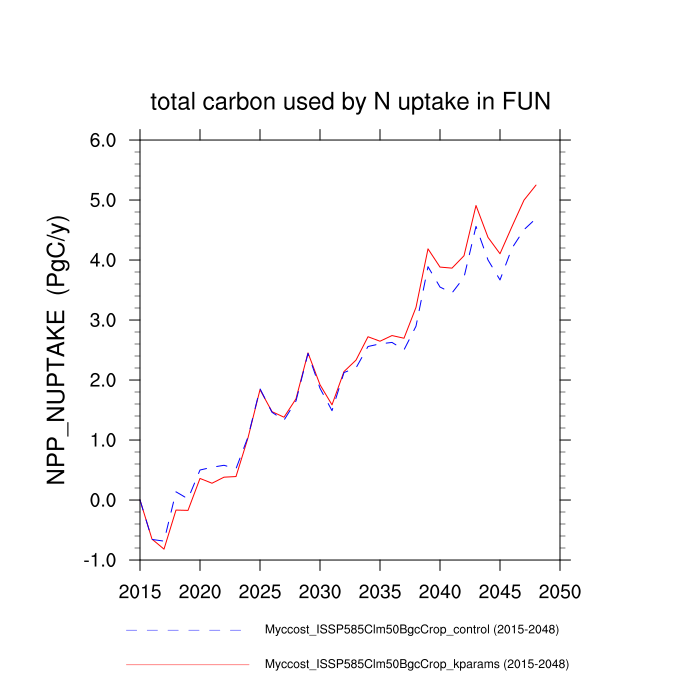 | total carbon used by N uptake in FUN (NPP_NUPTAKE) | TrendPlot | DifferencePlot | AnomalyPlot | ||