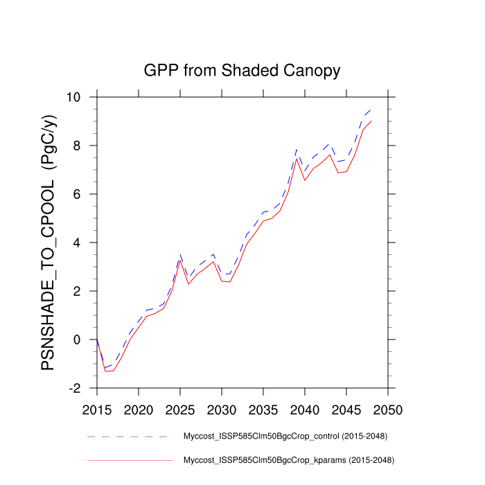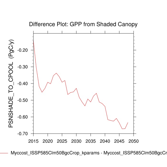 | GPP from Shaded Canopy (PSNSHADE_TO_CPOOL) | TrendPlot | DifferencePlot | AnomalyPlot | ||