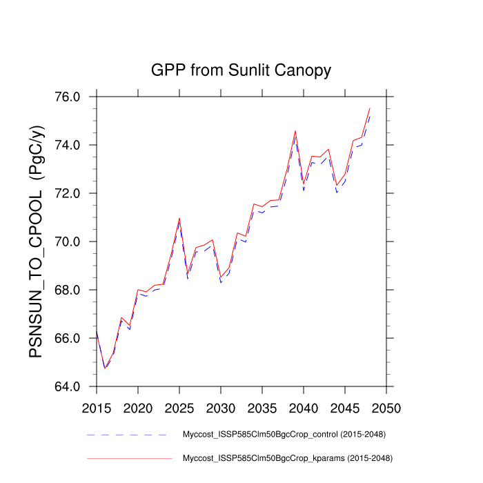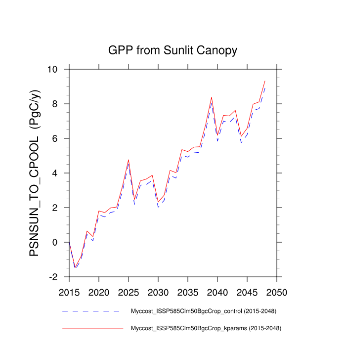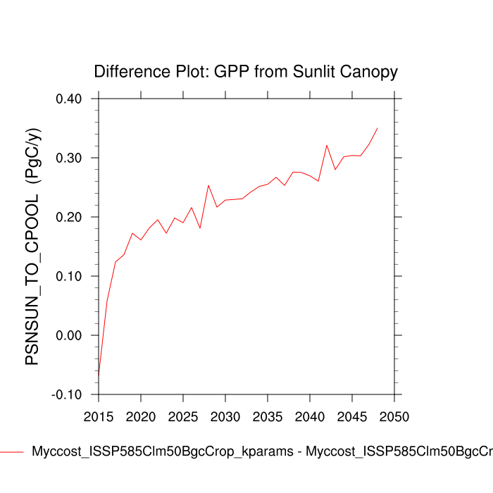 | GPP from Sunlit Canopy (PSNSUN_TO_CPOOL) | TrendPlot | DifferencePlot | AnomalyPlot | ||