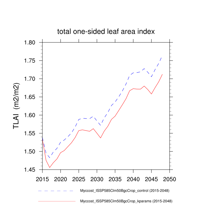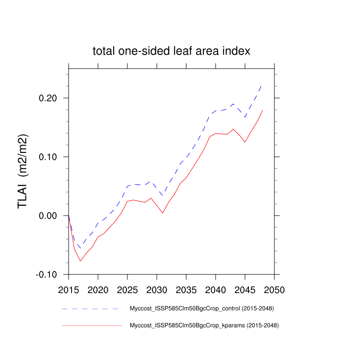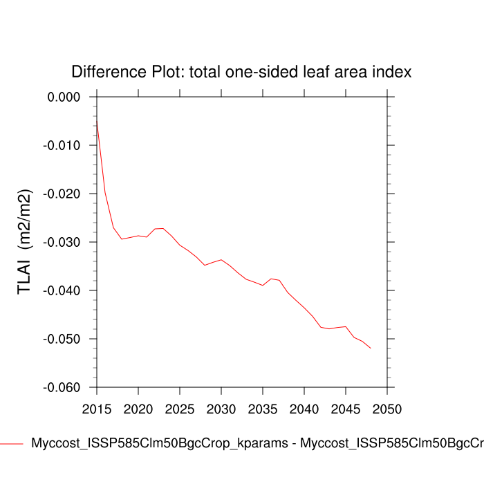 | total one-sided leaf area index (TLAI) | TrendPlot | DifferencePlot | AnomalyPlot | ||