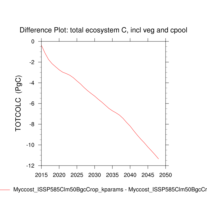 | total ecosystem C, incl veg and cpool (TOTCOLC) | TrendPlot | DifferencePlot | AnomalyPlot | ||