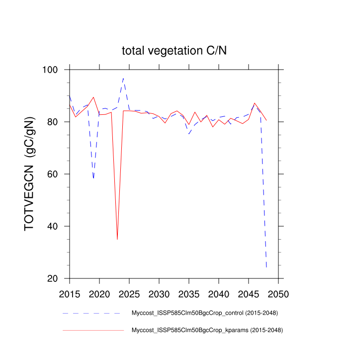| total vegetation C/N (TOTVEGCN) | TrendPlot | DifferencePlot | AnomalyPlot | ||